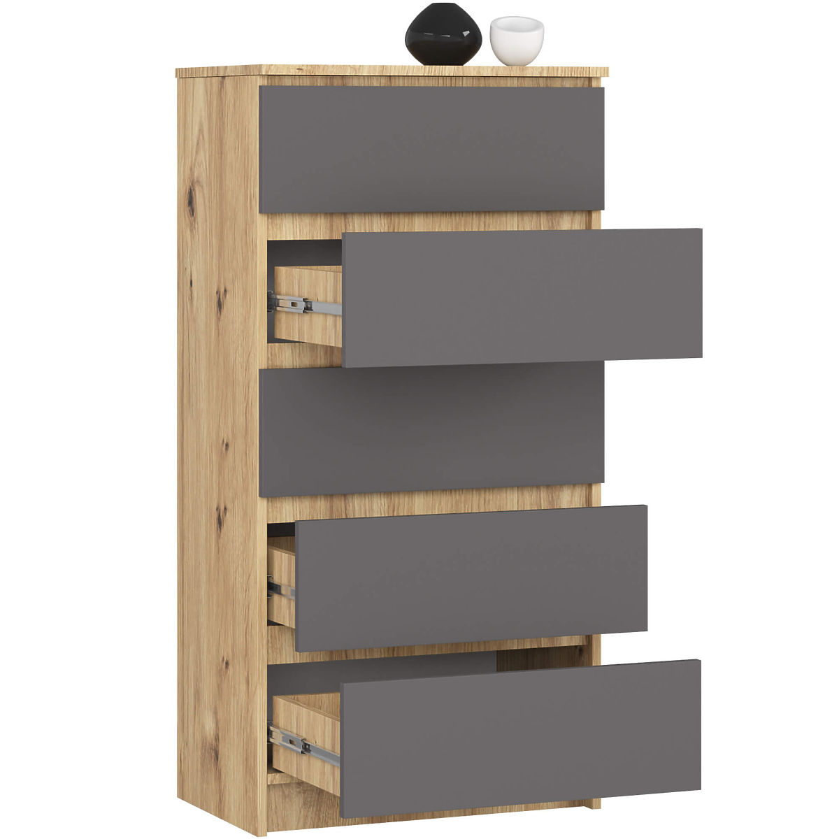 Banaby.ro » Mobilier pentru copii / Comode și dulapuri pentru copii / Comode pentru copii / COMODĂ K60 5SZ CLP PK STEJAR ARTISAN / GRI