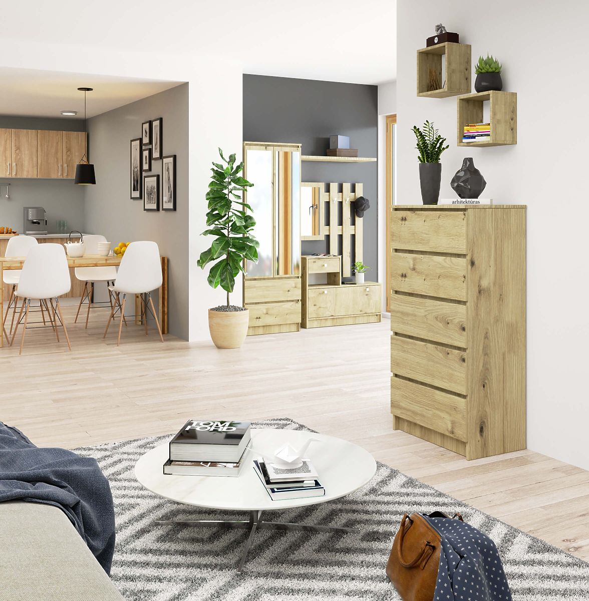Comodă din stejar Artisan cu 5 sertare și margini ABS. .. mai mult