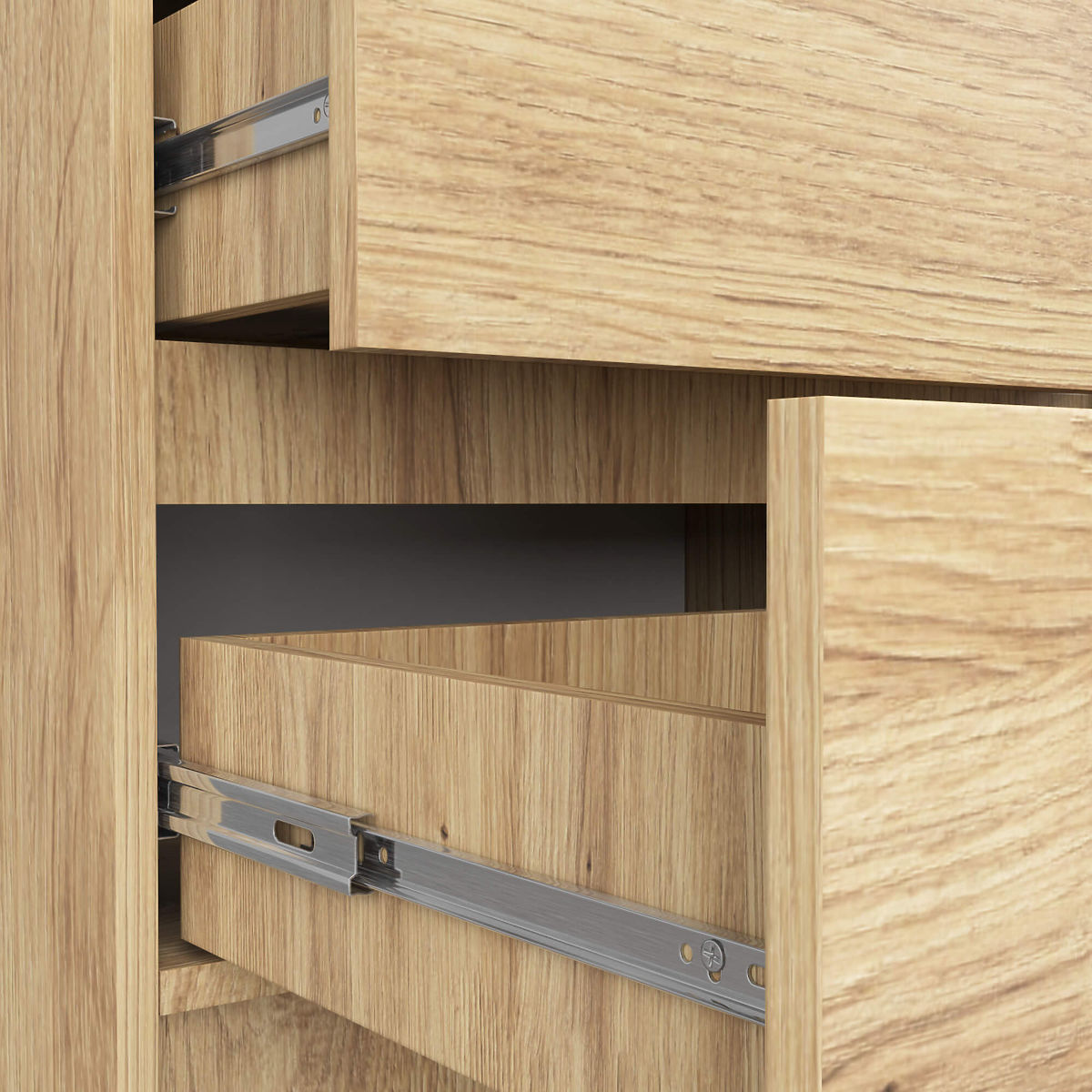 - Sertarele se mișcă pe glisiere metalice cu bile - Margini acoperite cu ABS pentru o protecție ridicată împotriva deteriorării
