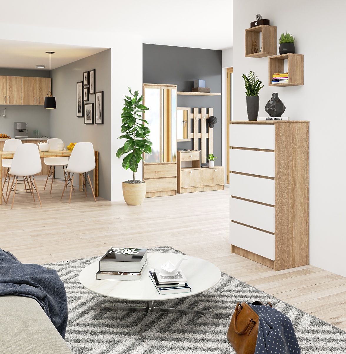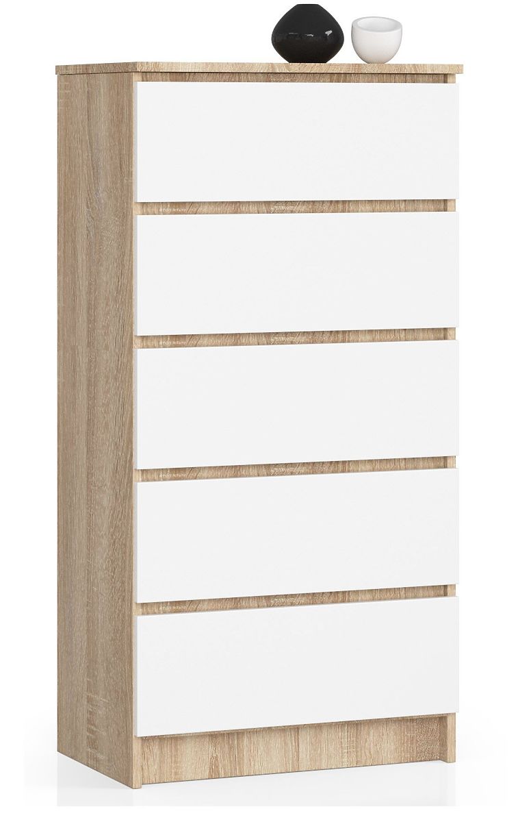 Banaby.ro » Mobilier pentru copii / Comode și dulapuri pentru copii / Comode pentru copii / COMODĂ K60 5SZ CLP PK STEJAR SONOMA / ALB