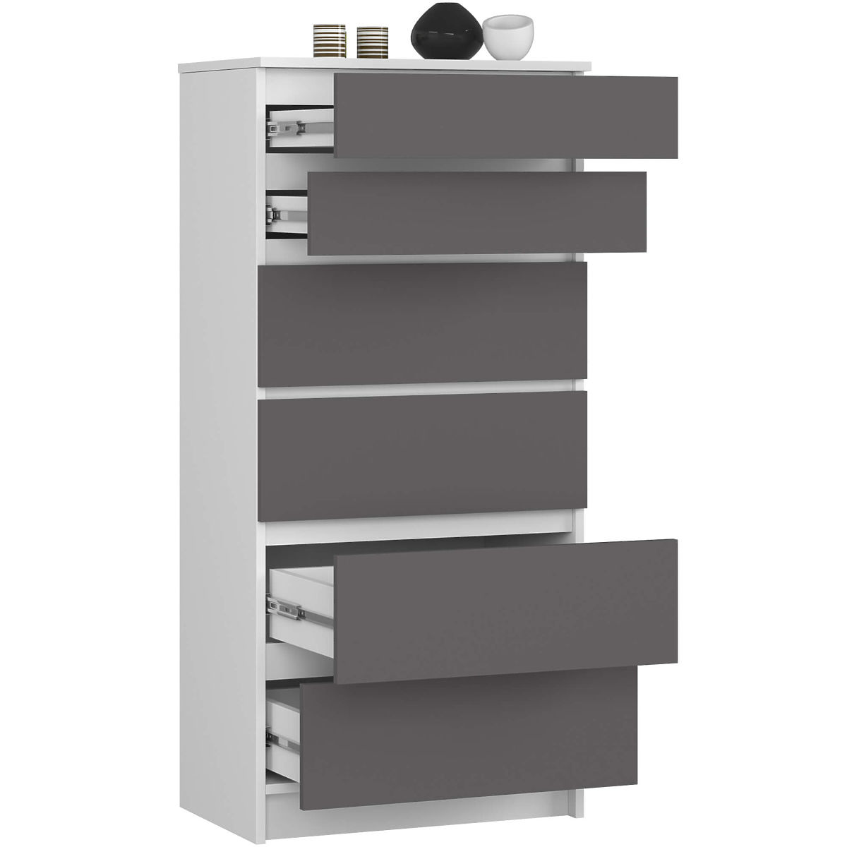 Comodă cu 6 sertare din placă laminată albă și gri grafit. .. mai mult