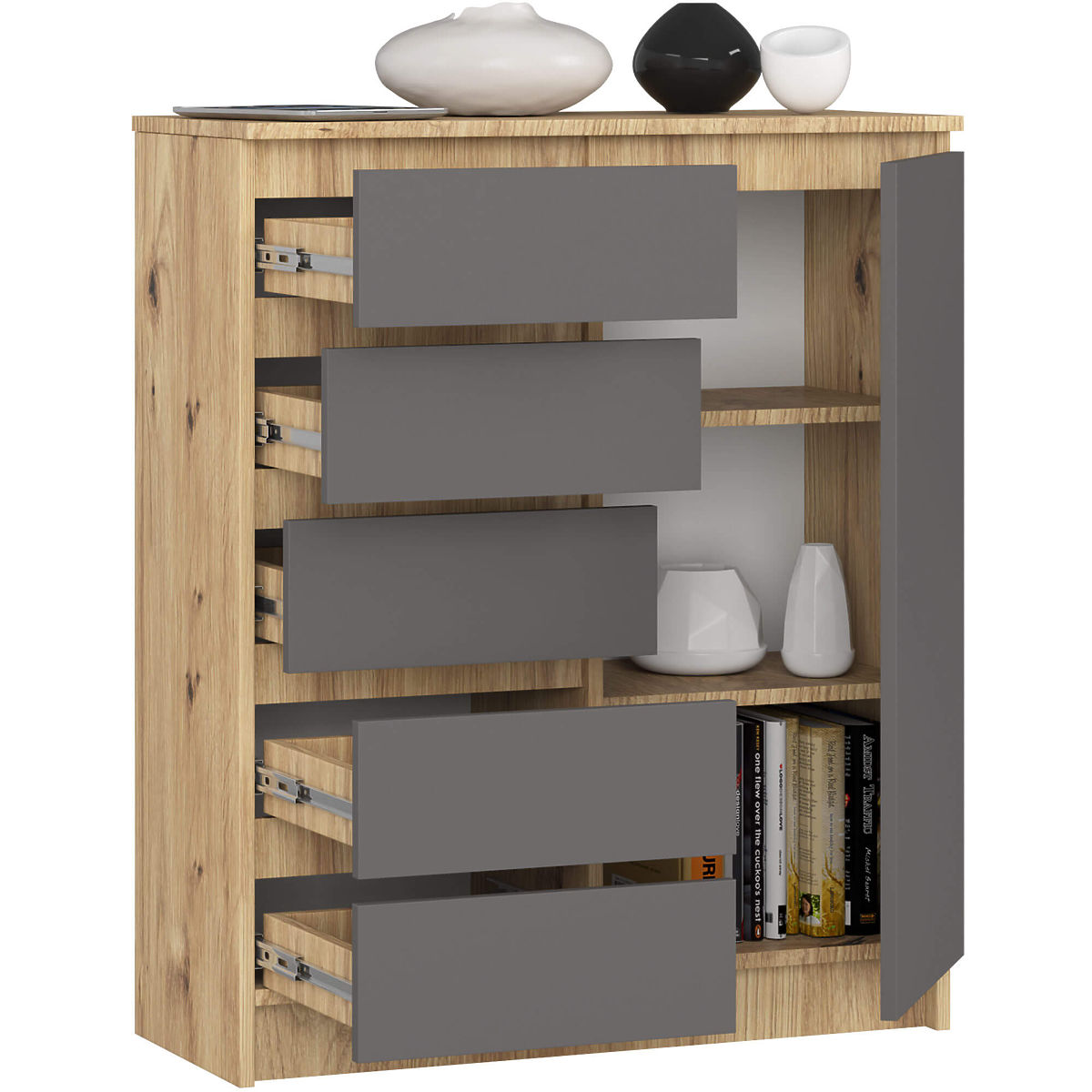 COMODĂ K80 1U 5S PK STEJAR ARTISAN / GRI GRAFIT