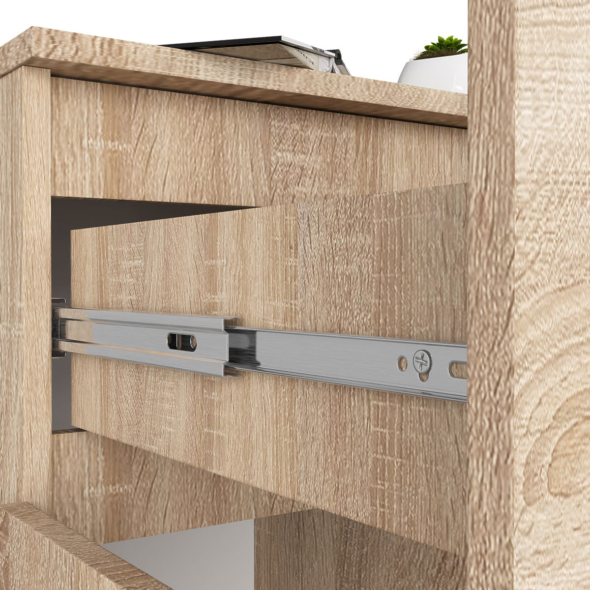 - Sertarul se mișcă pe ghidaje metalice cu bile
