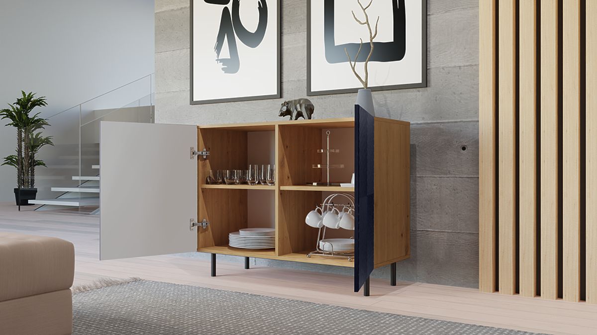 Comoda modernă și elegantă KAMA este un mobilier funcțional și spațios, care va aduce un nou strălucire interiorului dormitorului, sufrageriei sau camerei copilului dumneavoastră.