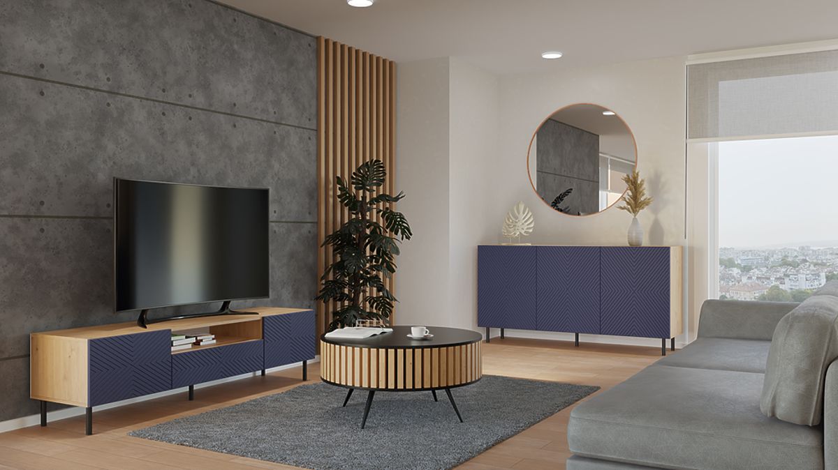 COMODĂ CU FAȚADE RIFLATE 3 UȘI