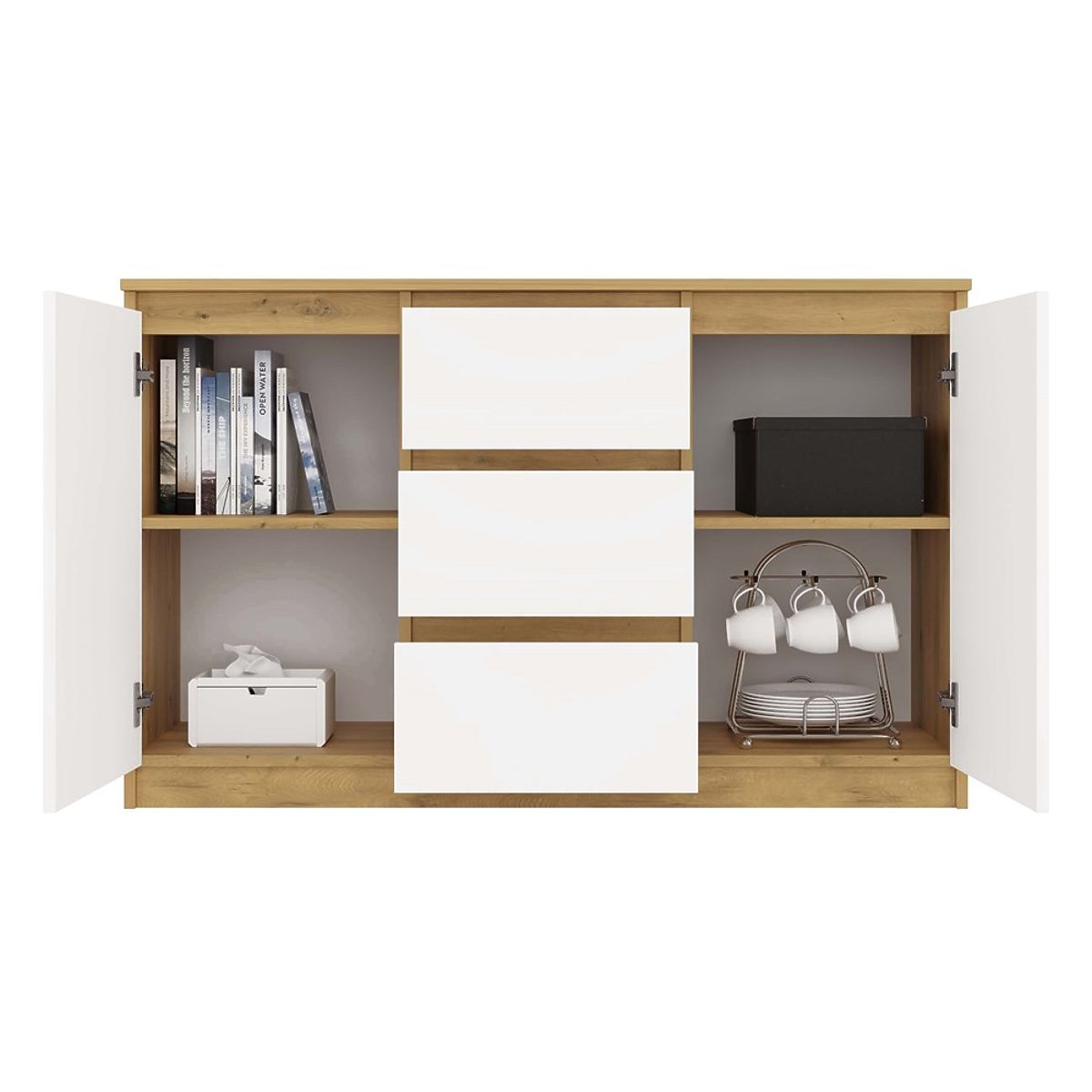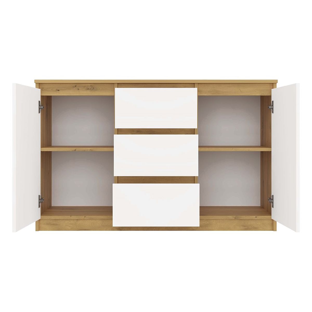Comodă modernă cu 2 uși și 3 sertare, în stejar Artisan și alb. .. mai mult