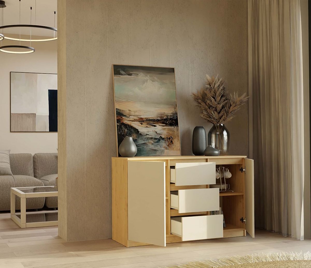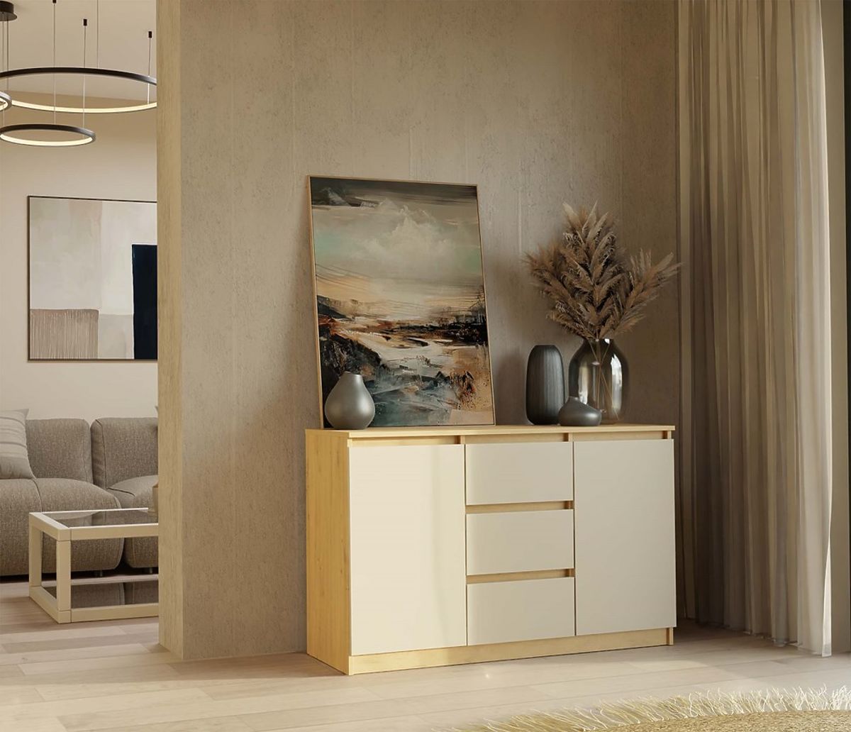 Banaby.ro » Mobilier pentru copii / Comode și dulapuri pentru copii / Comode pentru copii / Comodă Malwa 2D3S STEJAR ARTISAN BEJ KASHMIR