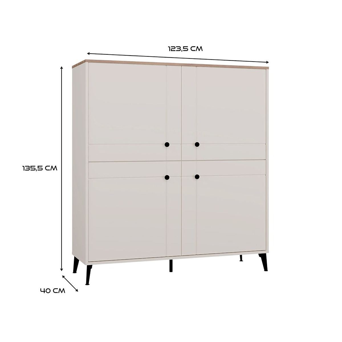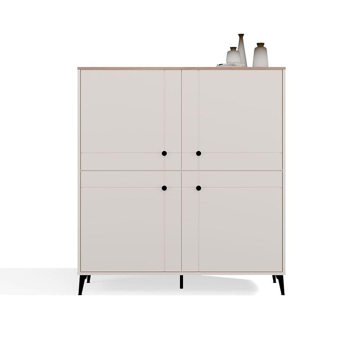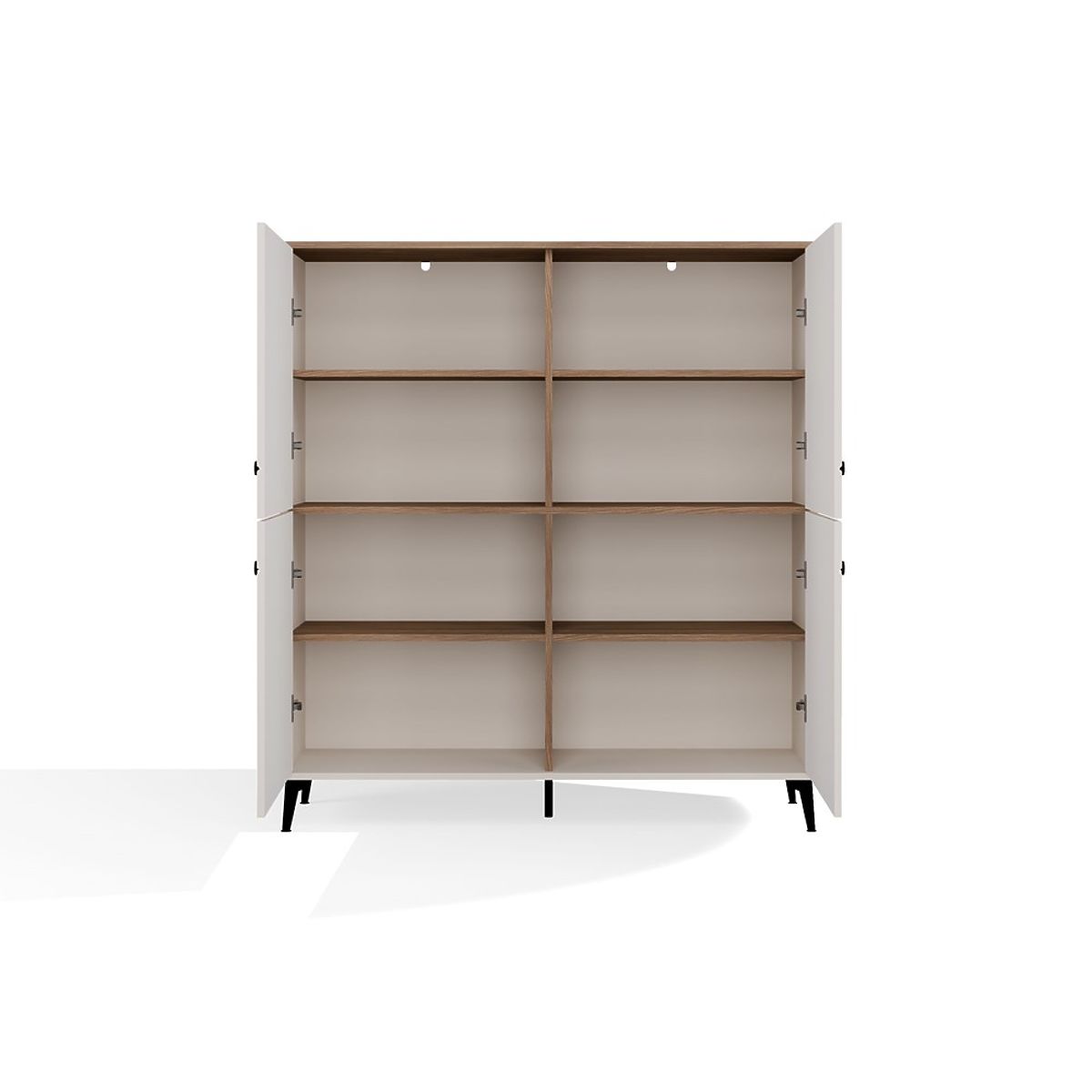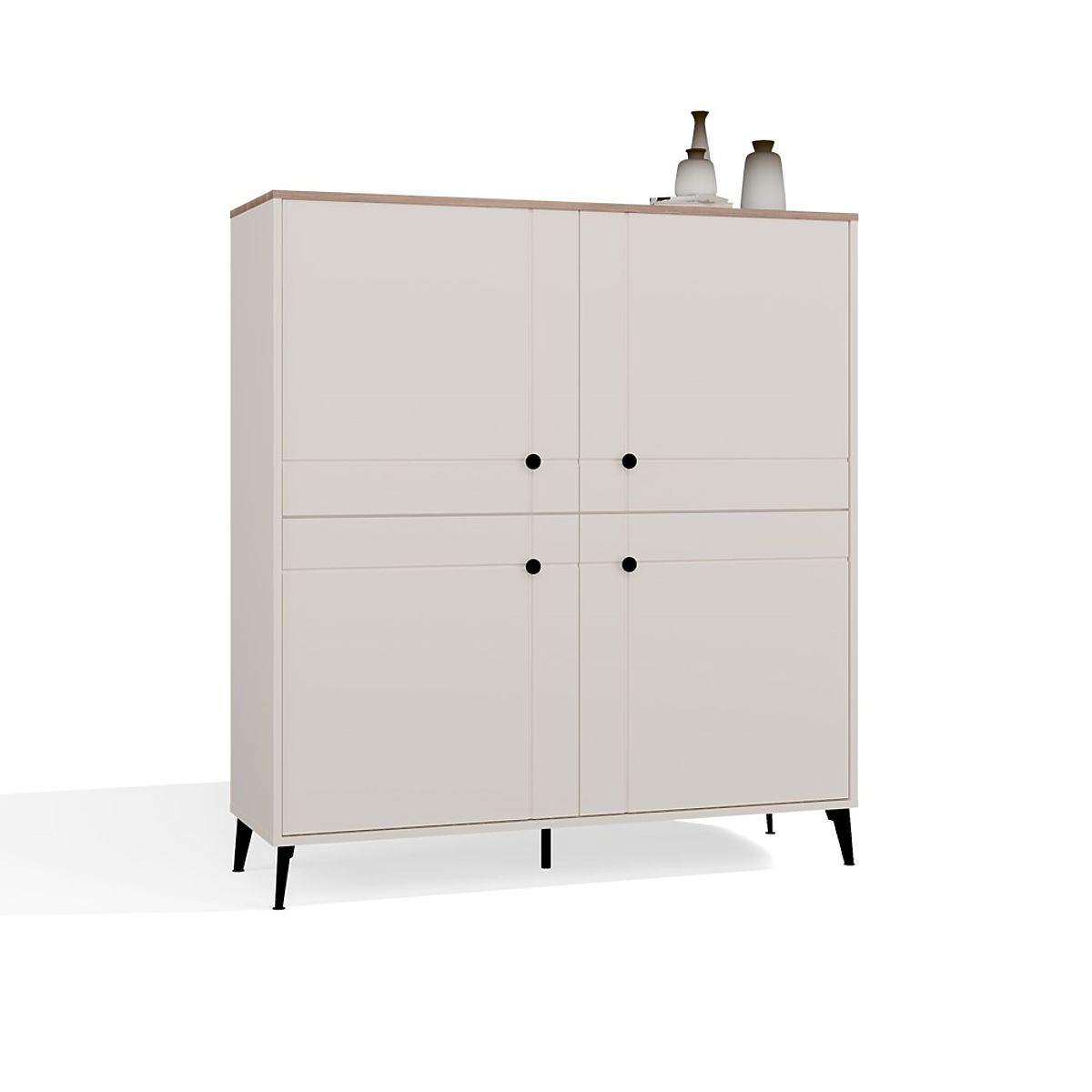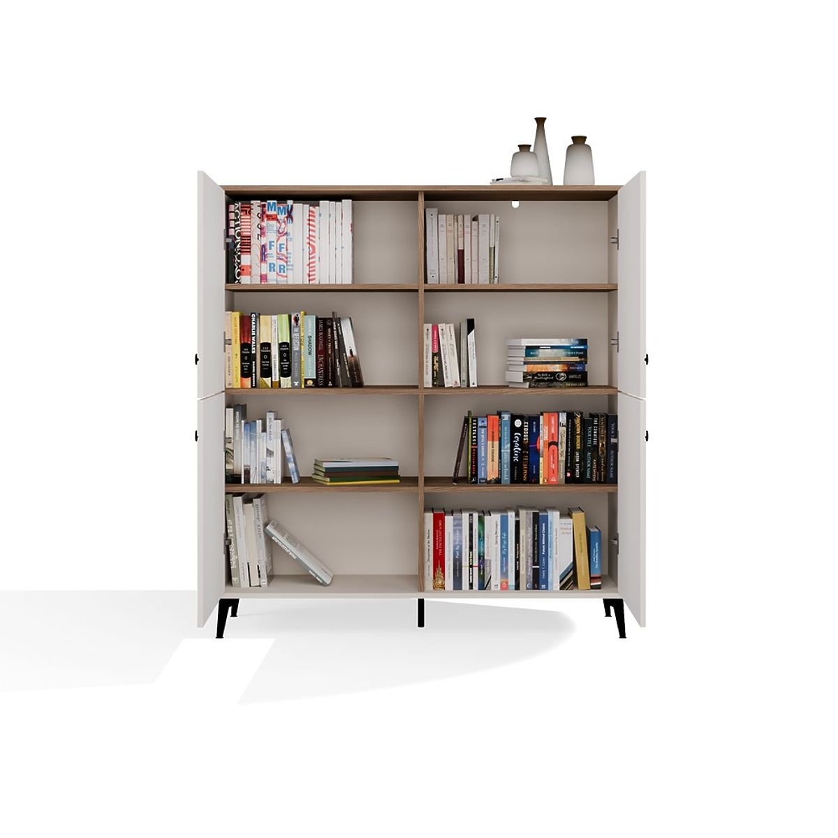 Modelul este echipat cu patru fațade cu închidere silențioasă, în spatele cărora se află opt rafturi practice – ideale pentru depozitarea cărților, documentelor, textilelor sau accesoriilor zilnice.