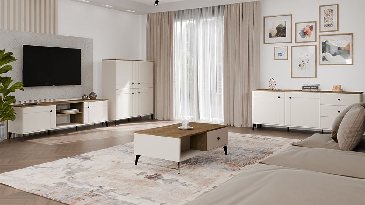 Informații: Ne străduim să reproducem cât mai fidel culorile mobilierului prezentate în fotografii. Totuși, trebuie să țineți cont că percepția acestora poate varia în funcție de setările individuale ale monitorului sau ecranului (cum ar fi luminozitatea, contrastul, temperatura culorilor sau tehnologia de afișare). Nuanța reală a produsului poate varia și în funcție de condițiile de iluminare. Diferențele de culoare nu sunt cauzate de un defect al produsului.