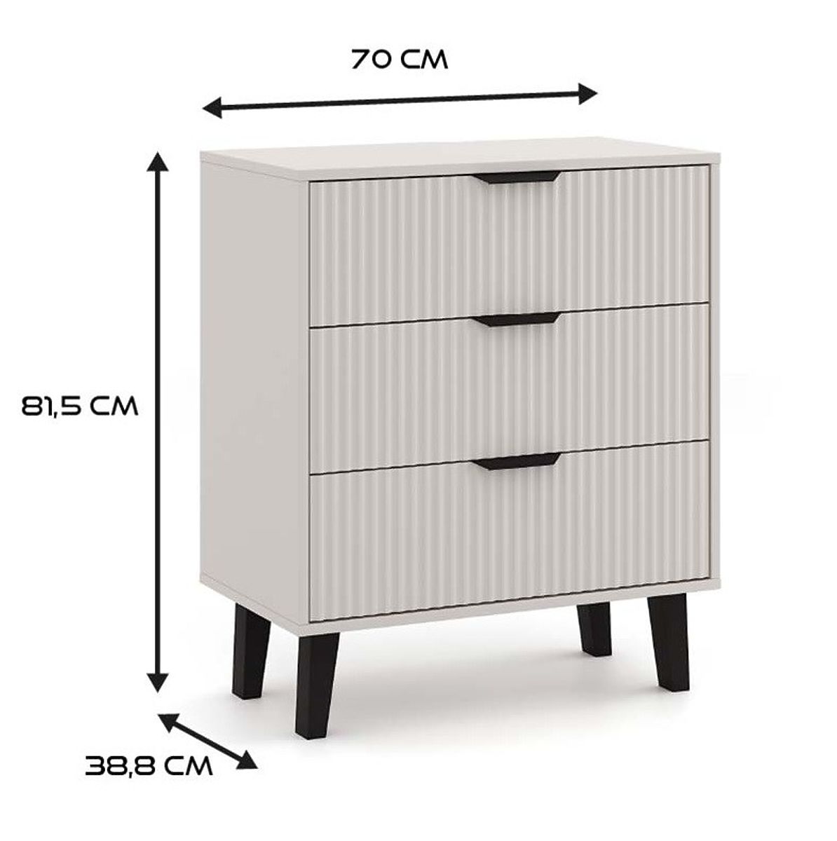 Comodă cu 3 sertare spațioase și design modern canelat. .. mai mult