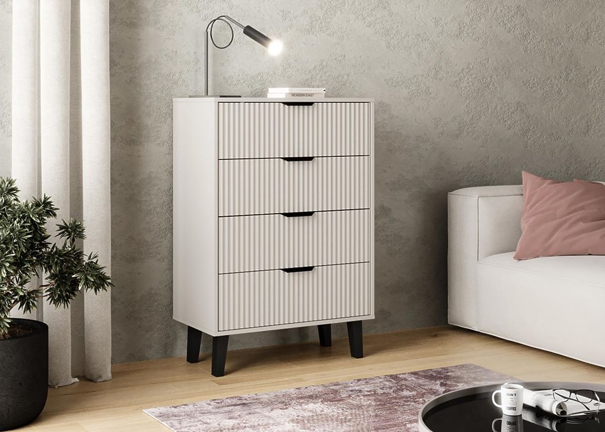 Comodă modernă Scandi 4S SLIM cu 4 sertare spațioase. .. mai mult