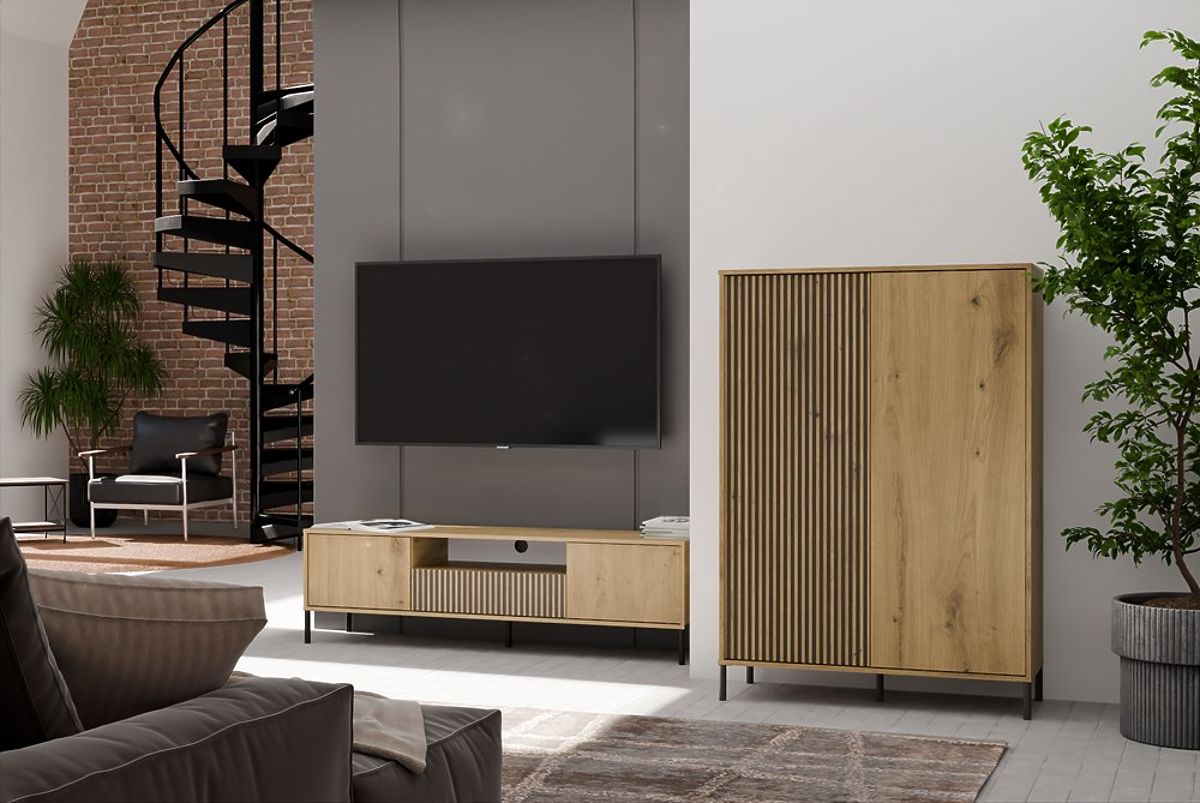Banaby.ro » Mobilier pentru copii / Comode și dulapuri pentru copii / Comode pentru copii / Vitrină KAMARO 2DD SLIM/STEJAR ARTISAN Lamelar Fațadă Canelată + Clasică