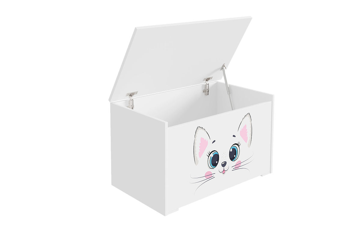 Banaby.ro » Mobilier pentru copii / Comode și dulapuri pentru copii / Cutii pentru jucării / Cufăr pentru jucării Daria alb cu imprimeu Pink Cat