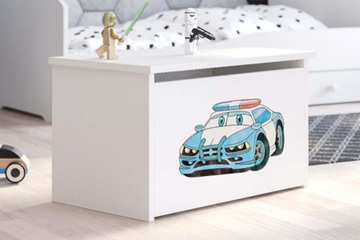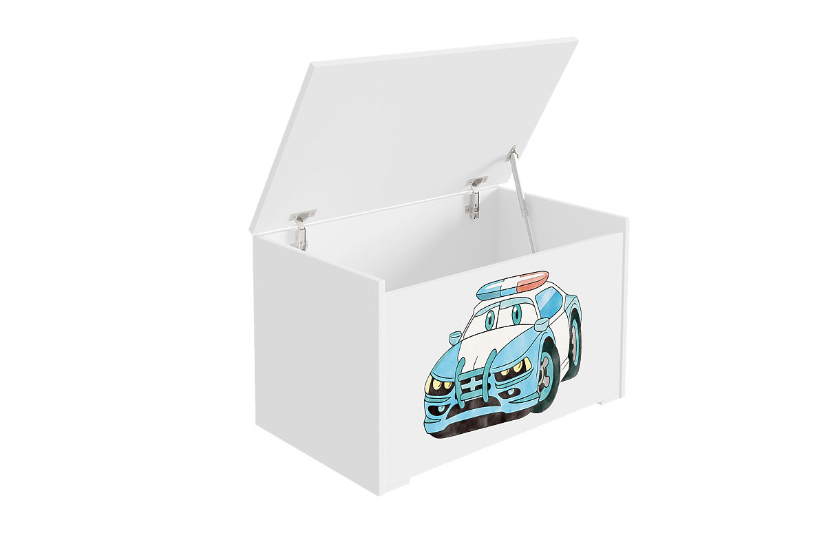 Banaby.ro » Mobilier pentru copii / Comode și dulapuri pentru copii / Cutii pentru jucării / Cufăr pentru jucării Daria alb cu imprimeu Poliție
