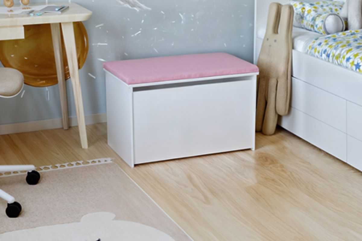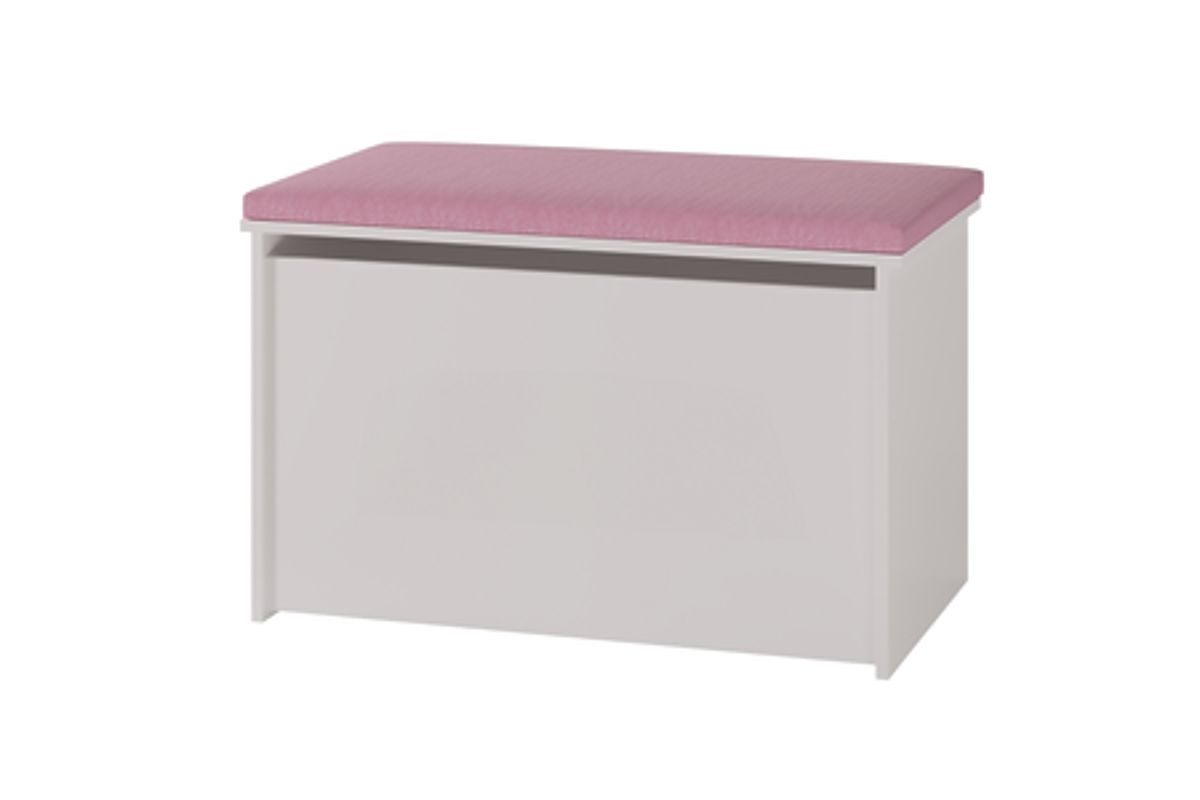Cufăr alb pentru jucării cu șezut roz și interior spațios. .. mai mult