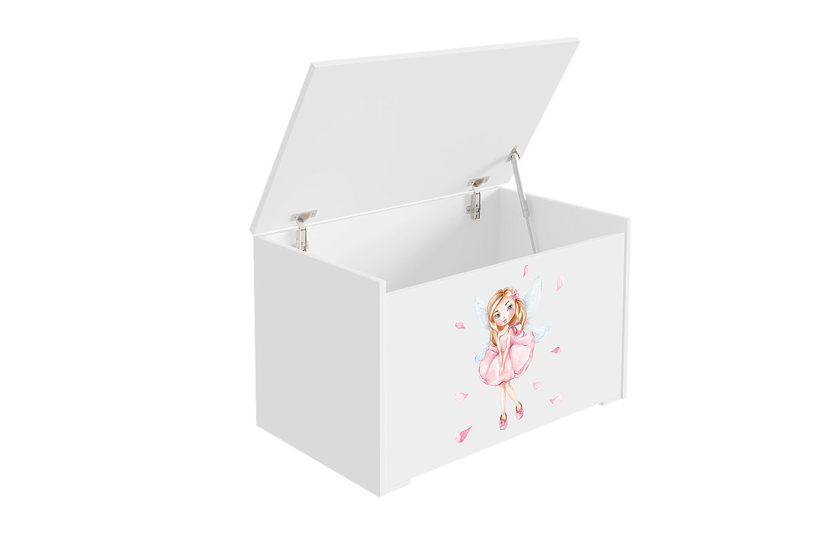 Această ladă spațioasă este locul ideal pentru depozitarea jucăriilor, cărților și altor comori ale copilului dumneavoastră. Imprimeul UV cu motiv pentru copii nu doar că oferă mobilierului un caracter deosebit, dar este și rezistent la abraziune și sigur pentru cei mici. Datorită utilizării unui piston cu gaz, deschiderea și închiderea lăzii sunt simple și sigure, ceea ce sprijină independența copilului.