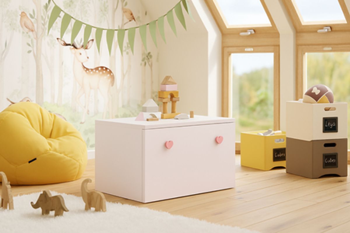 Lada INGA se remarcă prin aspectul său modern și minimalist, care se potrivește perfect cu diferite stiluri de interioare. Poate servi nu doar ca spațiu de depozitare pentru jucării, ci și ca spațiu de depozitare practic în alte încăperi. Fabricată din placă laminată durabilă și prevăzută cu margine din PVC, garantează rezistență și întreținere ușoară.