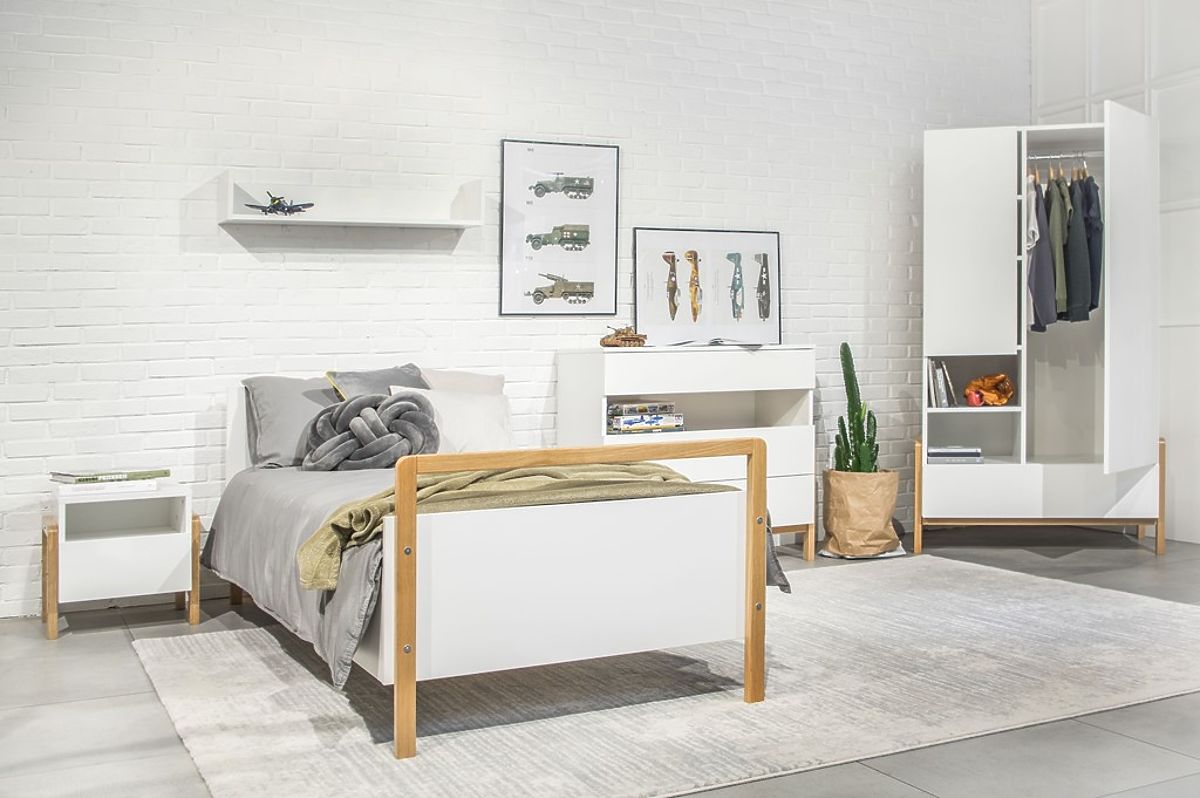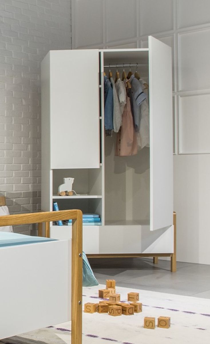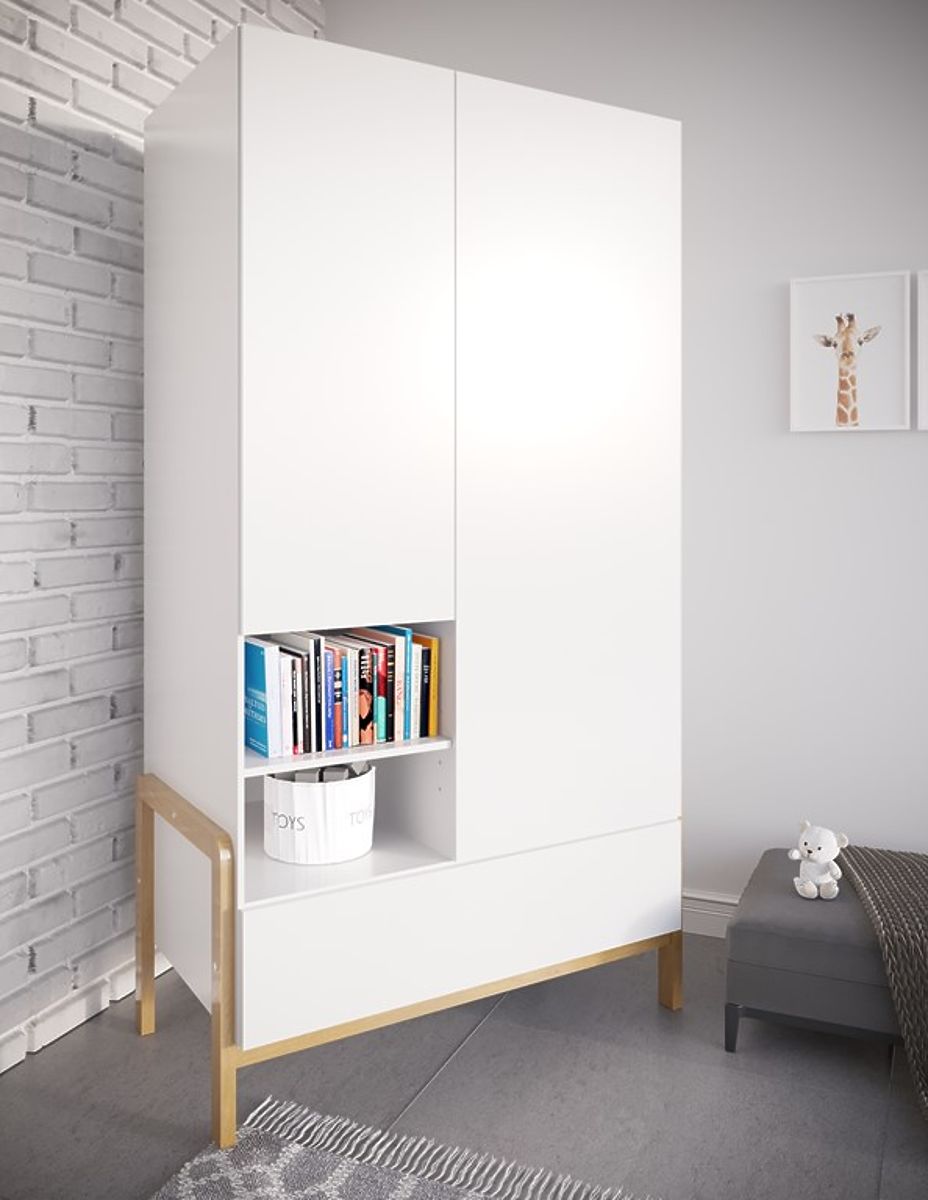Dulapul alb cu două uși Viktor în stil scandinav va adăuga o notă de eleganță atât camerei de fete, cât și camerei pentru băieți. Această soluție originală de dulap oferă mult spațiu de depozitare.