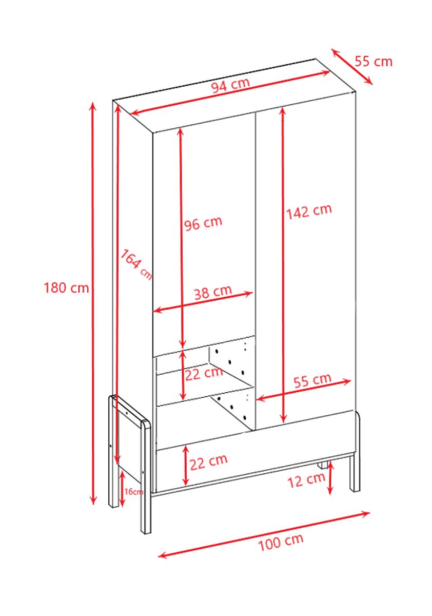 Interiorul dulapului constă dintr-un compartiment spațios cu șină pentru haine și cinci rafturi , dintre care două sunt deschise, oferind acces comod la necesitățile zilnice. În partea de jos a dulapului se află un sertar practic, care se poate închide.