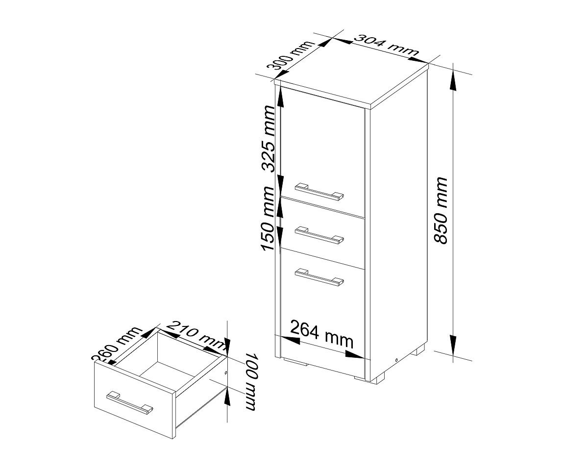 Dulapul de baie de sine stătător este un mobilier universal pentru utilizare atât în băi mari, cât și mici. Poate fi plasat lângă chiuvetă, cabină de duș sau mașină de spălat. Datorită dimensiunilor sale și posibilității de amplasare, umple și spațiul din colțul băii, care este adesea neutilizat. Dulapul de baie stejar sonoma cu fațadă albă se remarcă printr-un design elegant. Combinațiile de culori bine alese permit ca dulapul să se potrivească cu faianța și teracota în orice nuanță și cu mobilier clasic sau modern. Coloana dulapului de baie are trei uși largi, confortabile și ușor de deschis, echipate cu mânere ergonomice. Rafturile spațioase și adânci și sertarul pot fi utilizate pentru depozitarea prosoapelor, produselor de curățenie sau cosmeticelor, cum ar fi flacoanele cu parfumuri și produsele de bărbierit. Mobilierul este fabricat din placă laminată rezistentă și rezistentă la deteriorare și uzură. Marginile ABS rezistente la decolorare, cu care sunt acoperite marginile dulapului, protejează suplimentar mobilierul de deteriorare.
