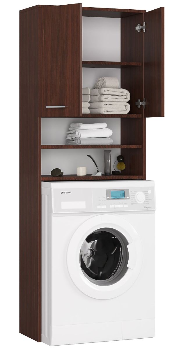 Dulap de baie wenge peste mașina de spălat, cu rafturi și uși. .. mai mult