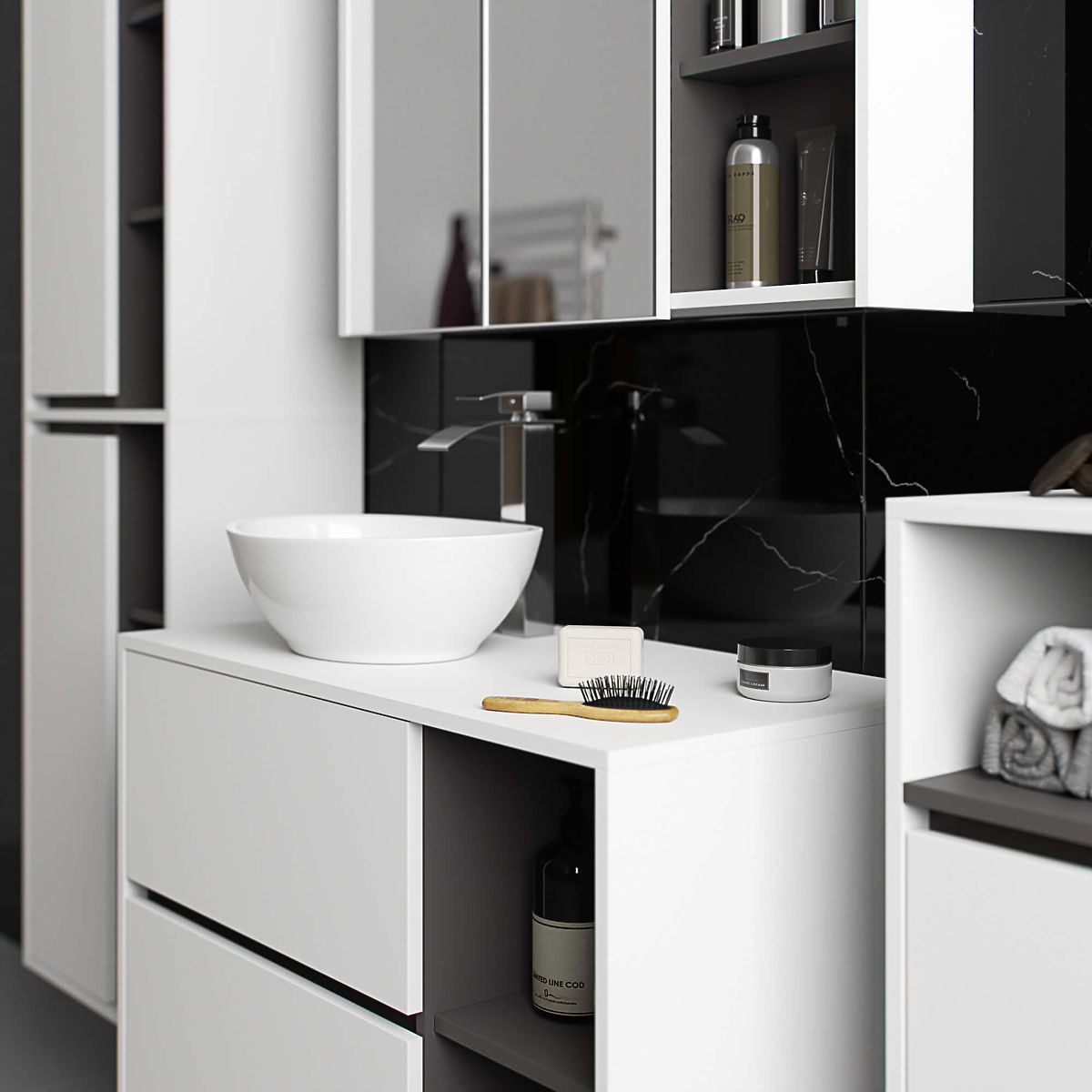 Banaby.ro » Mobilier pentru copii / Comode și dulapuri pentru copii / Dulapuri pentru copii / DULAP DE BAIE SUB LAVOAR CU ORIFICII VAMI W90 UM 2SZ 2P ALB / GRI GRAFIT
