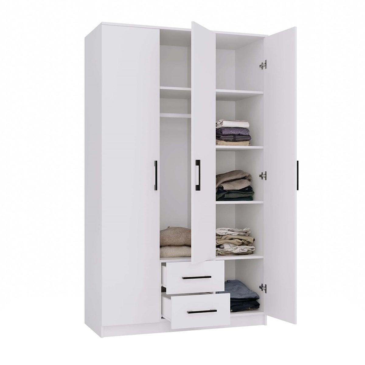 Dulap alb Romana 120 cu 3 uși și 2 sertare pentru organizare eficientă. .. mai mult