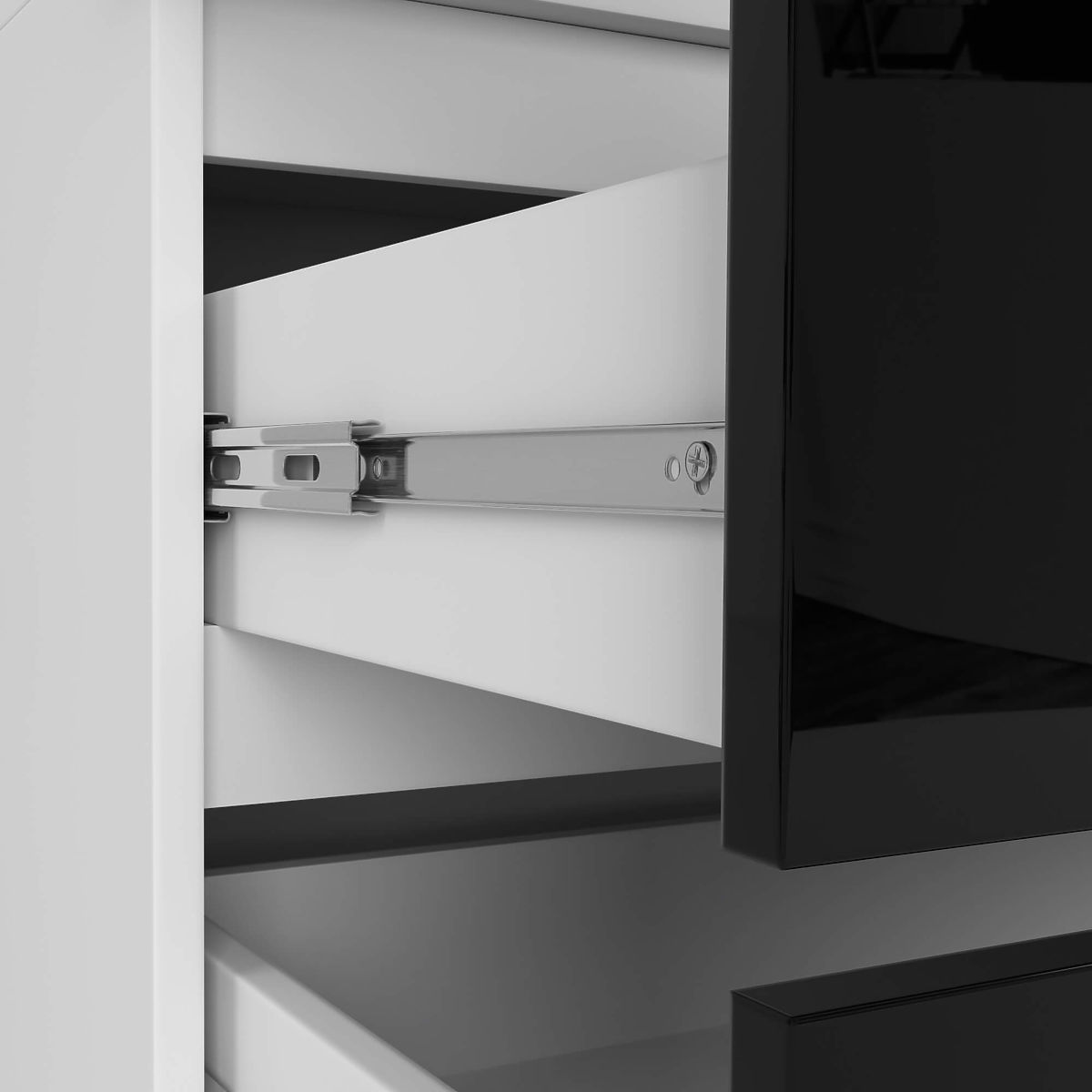 Culoare mobilier: alb, fațade negre lucioase