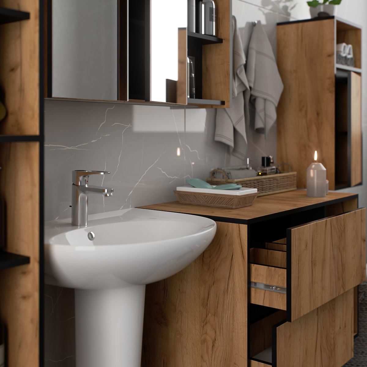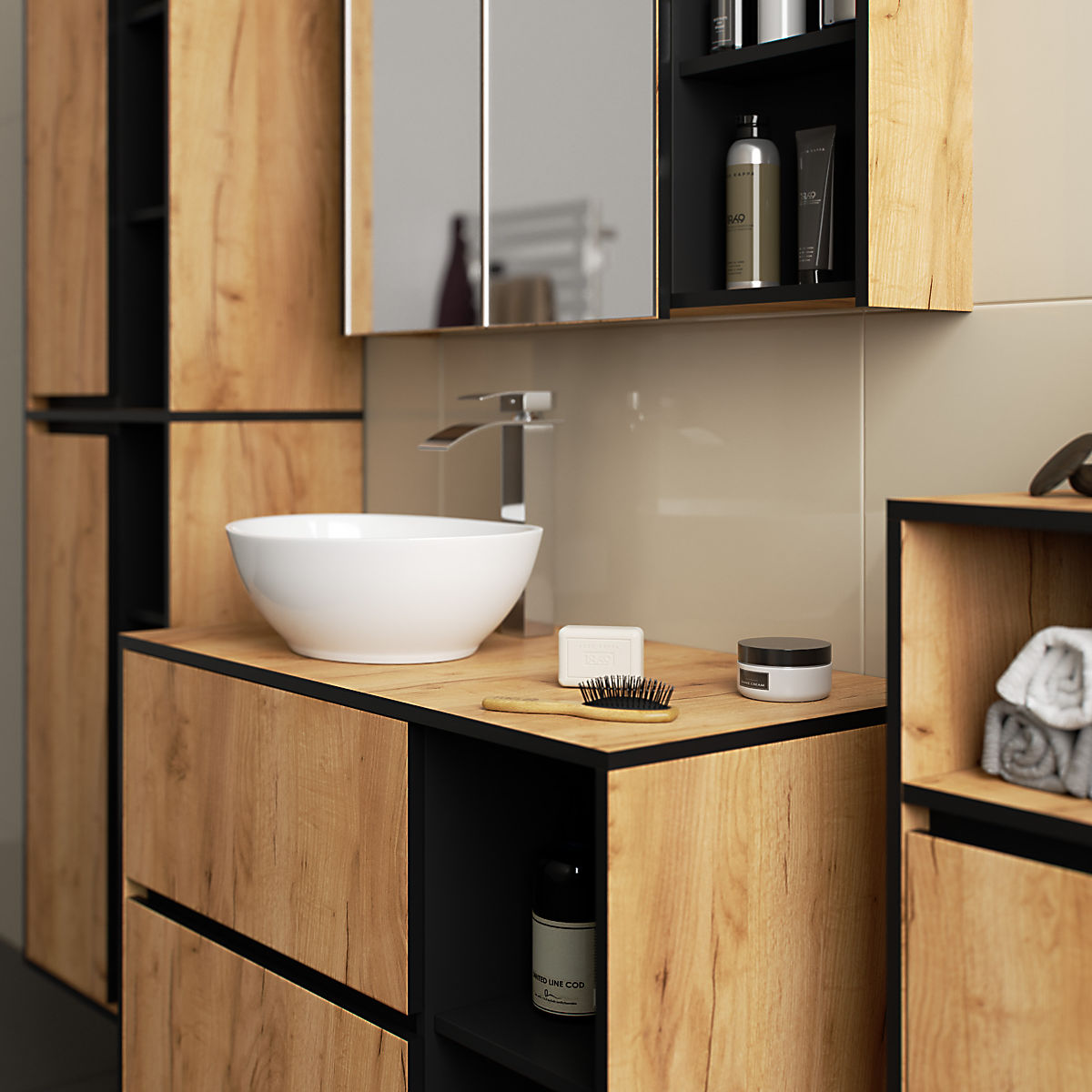 Banaby.ro » Mobilier pentru copii / Comode și dulapuri pentru copii / Dulapuri pentru copii / DULAP SUSPENDAT PENTRU BAIE VAMI W35 1D 1W STEJAR CRAFT / NEGRU