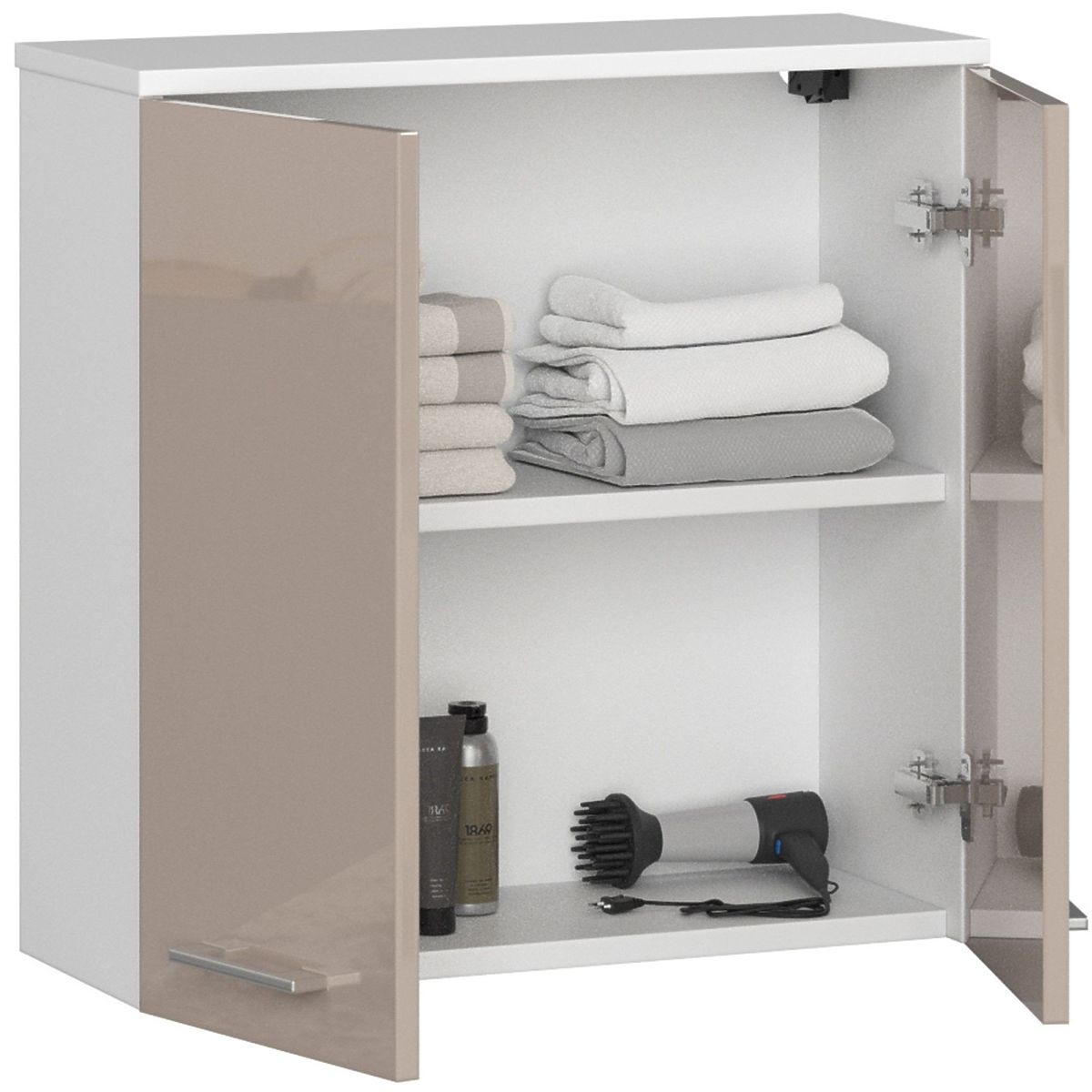 Dulap suspendat de baie cu 2 uși și finisaj cappuccino lucios. .. mai mult
