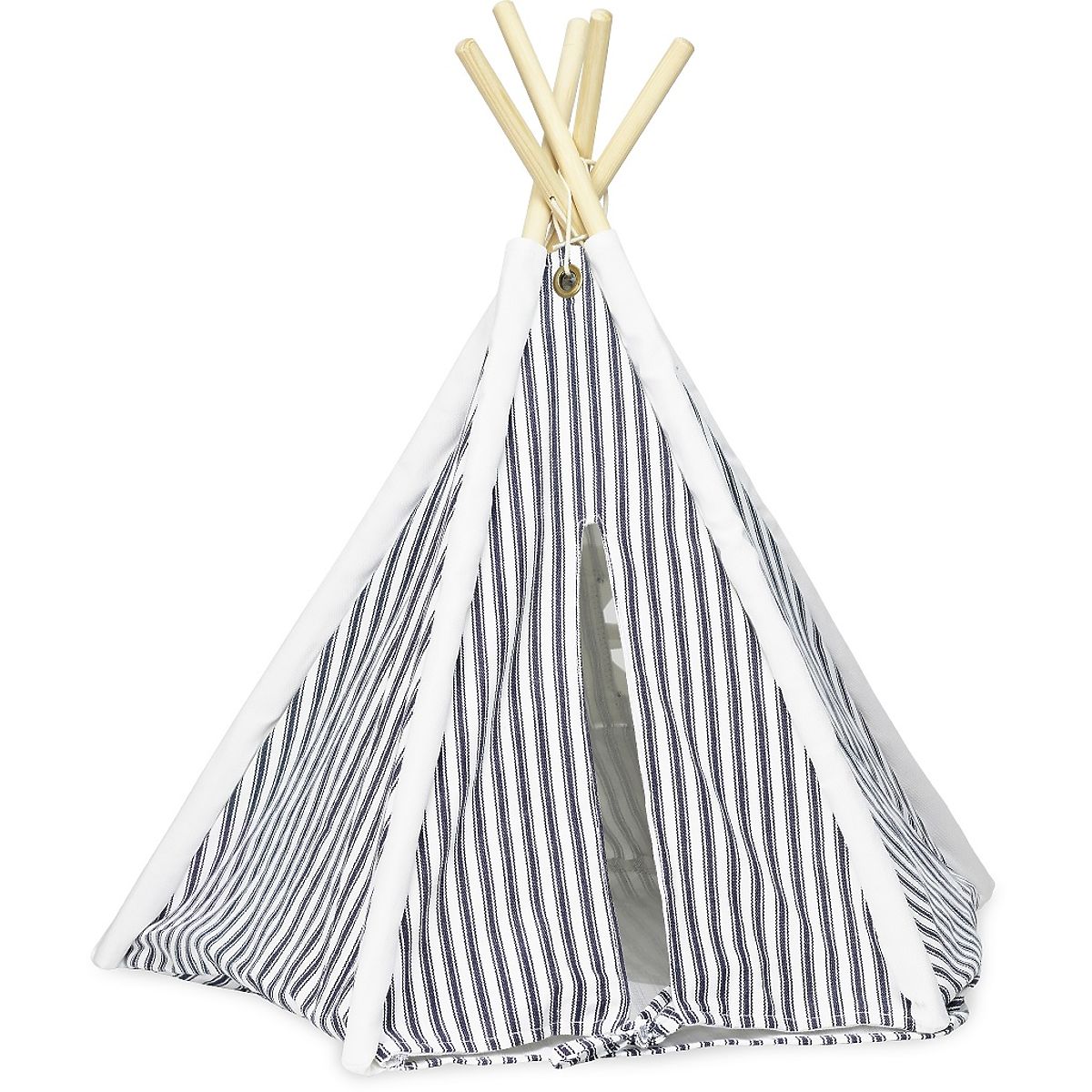 Un frumos tipi cu dungi în versiune mini, ideal pentru păpuși. Baza din lemn cu o husă textilă este ușor de asamblat. Materialul textil este de culoare gri închis și alb. Principalele caracteristici: tipi pentru păpuși, construcție solidă