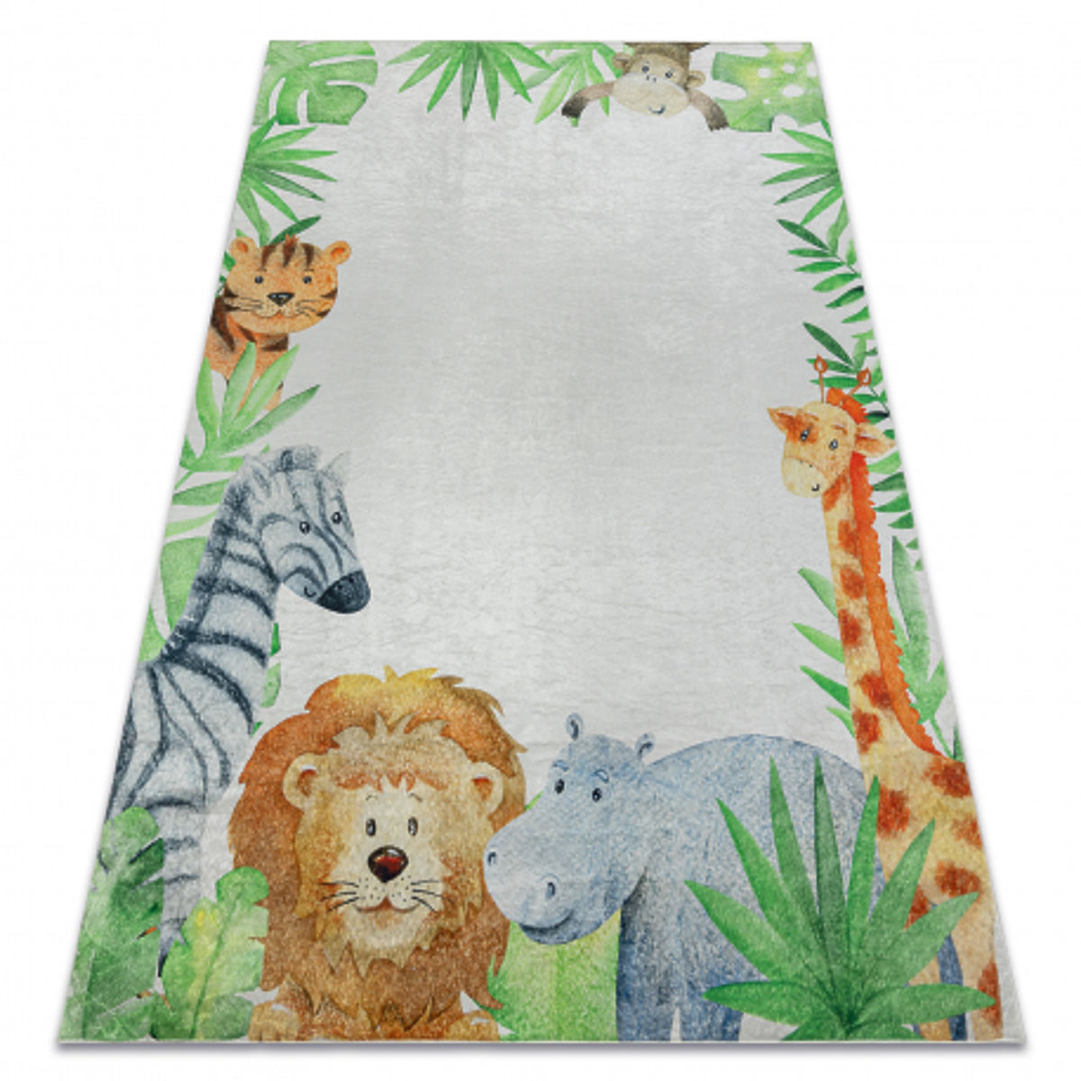 Covor de spălat pentru copii cu animale africane, antiderapant, alb/verde. .. mai mult