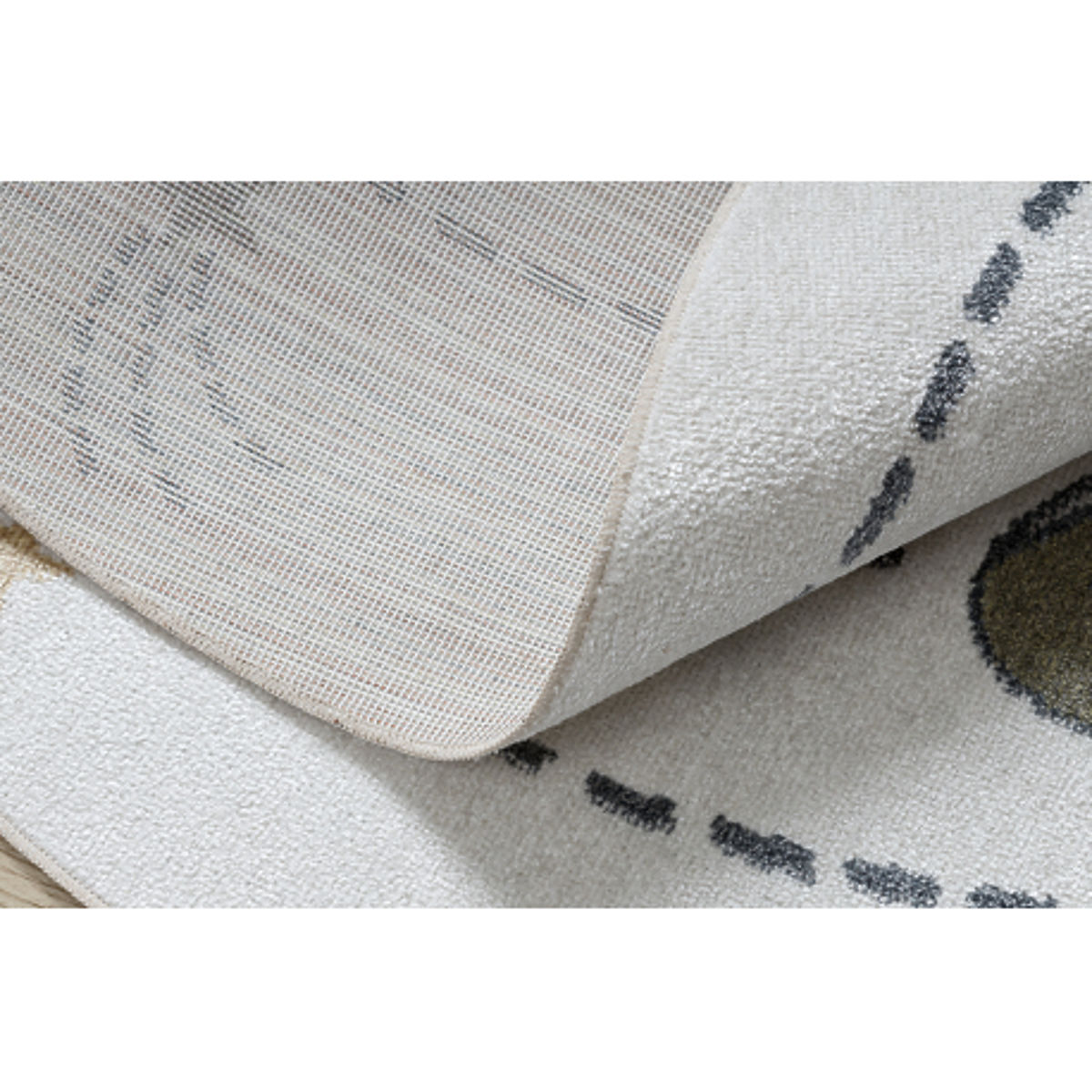 Covorul rotund BONO 8288 Spațiu și planete transportă imaginația copiilor până în cosmos. Fundalul crem completat de detalii antracit creează o combinație modernă și vizual atrăgătoare, care se potrivește perfect în camerele băieților și fetelor.