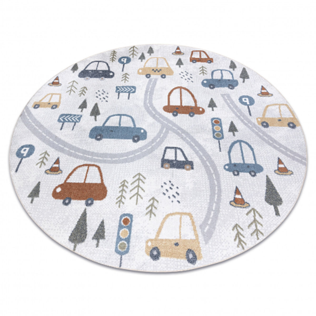 Banaby.ro » Mobilier pentru copii / Covoare pentru copii / Covoroașe de joacă / Covor BONO 8436 rotund Mașini, străzi crem / gri deschis