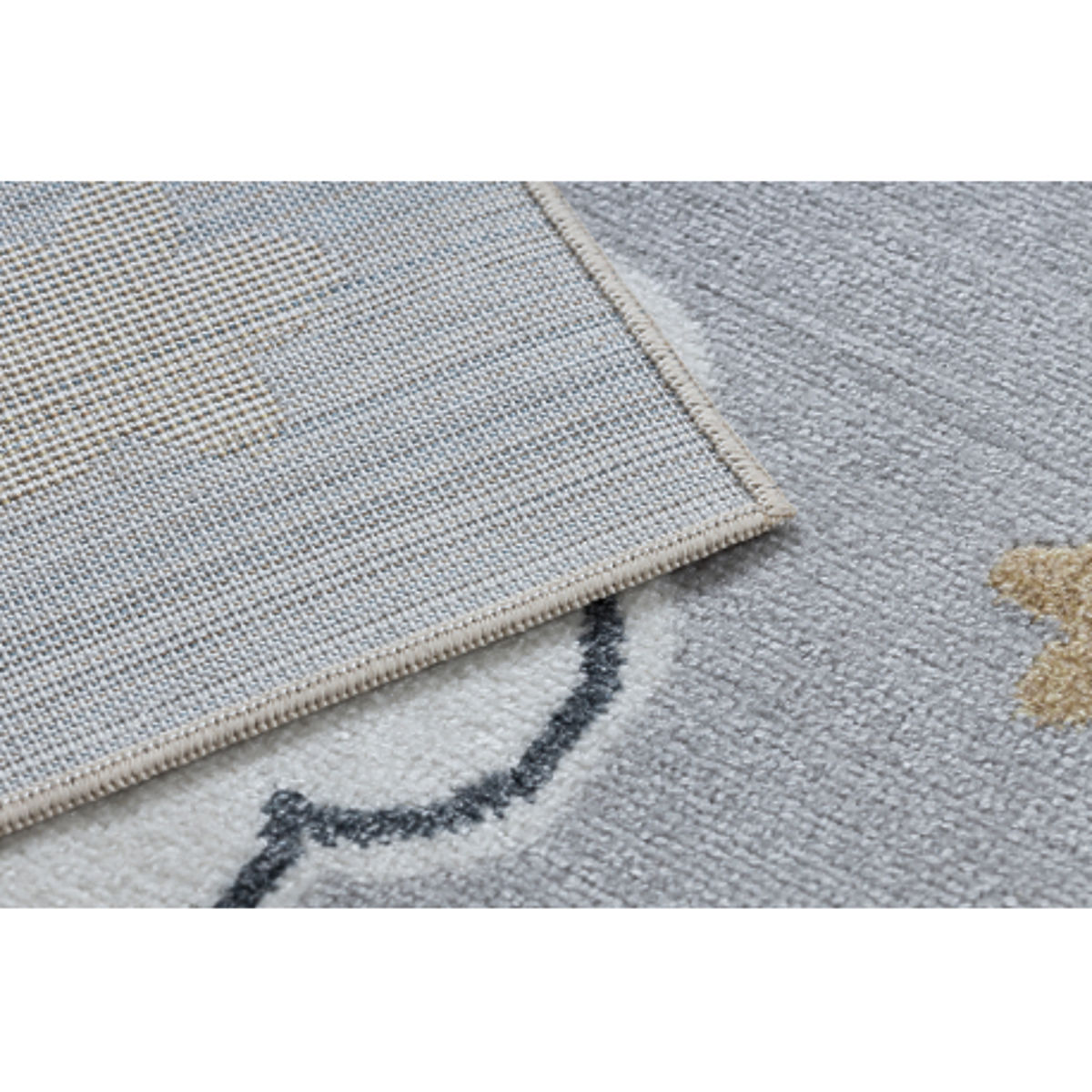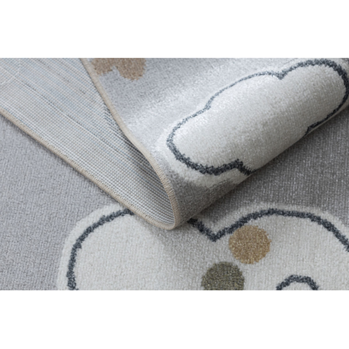 Covorul dreptunghiular BONO 8437 Nori și cer aduce în camera copilului delicatețe, liniște și armonie. Fundalul gri deschis combinat cu detalii crem creează un aspect liniștitor și elegant, care se potrivește cu ușurință atât în interioare moderne, cât și clasice.