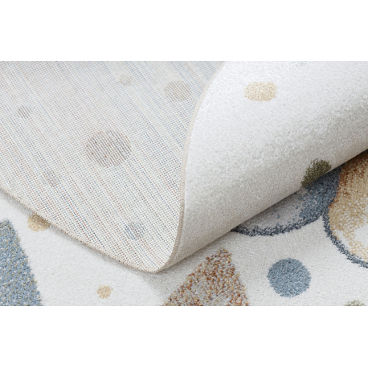 Covorul rotund adorabil BONO 9614 Ursuleț cu baloane aduce o atmosferă jucăușă și veselă în orice cameră de copii. Culoarea crem delicată combinată cu detalii gri deschis oferă un aspect curat, modern și se integrează ușor în diferite stiluri de interior.