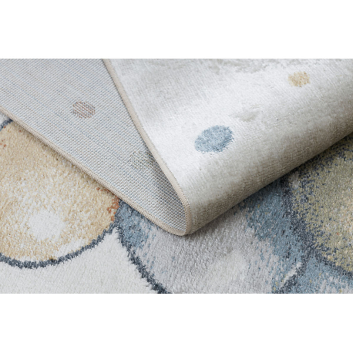 Covorul dreptunghiular BONO 9614 Urs cu baloane adaugă camerei copilului o atmosferă veselă, delicată și primitoare. Fundalul crem combinat cu detalii gri deschis creează un aspect plăcut și armonios, care se potrivește perfect atât în interioare moderne, cât și clasice.