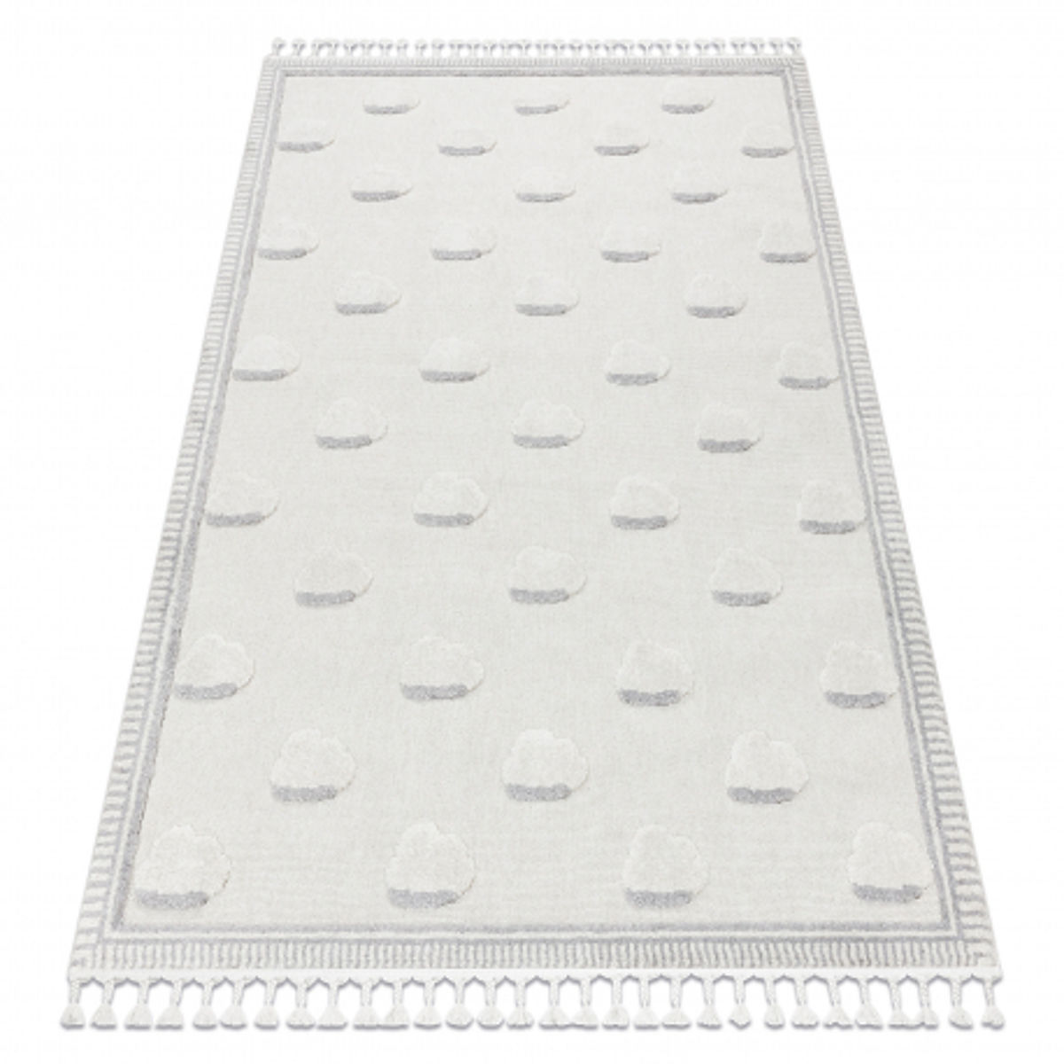 Banaby.ro » Mobilier pentru copii / Covoare pentru copii / Covoroașe de joacă / Covor YOYO GD62 alb / gri - Nori pentru copii, structural, senzorial Franjuri