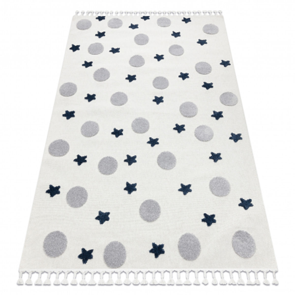 Banaby.ro » Mobilier pentru copii / Covoare pentru copii / Covoroașe de joacă / Covor YOYO GD75 alb / gri - stele, cercuri pentru copii, structural, senzorial Franjuri