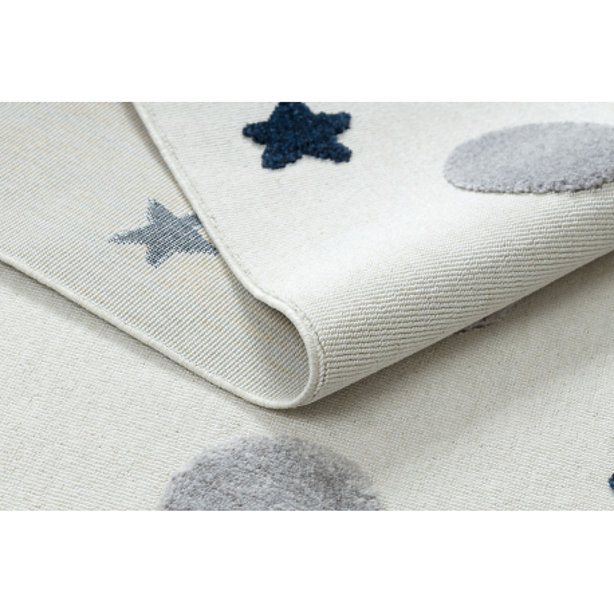 Covor dreptunghiular pentru copii cu stele și cercuri, alb și gri. .. mai mult