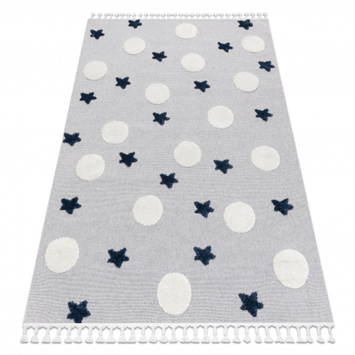 Banaby.ro » Mobilier pentru copii / Covoare pentru copii / Covoroașe de joacă / Covor YOYO GD75 gri/alb - stele, cercuri pentru copii, structural, senzorial cu franjuri