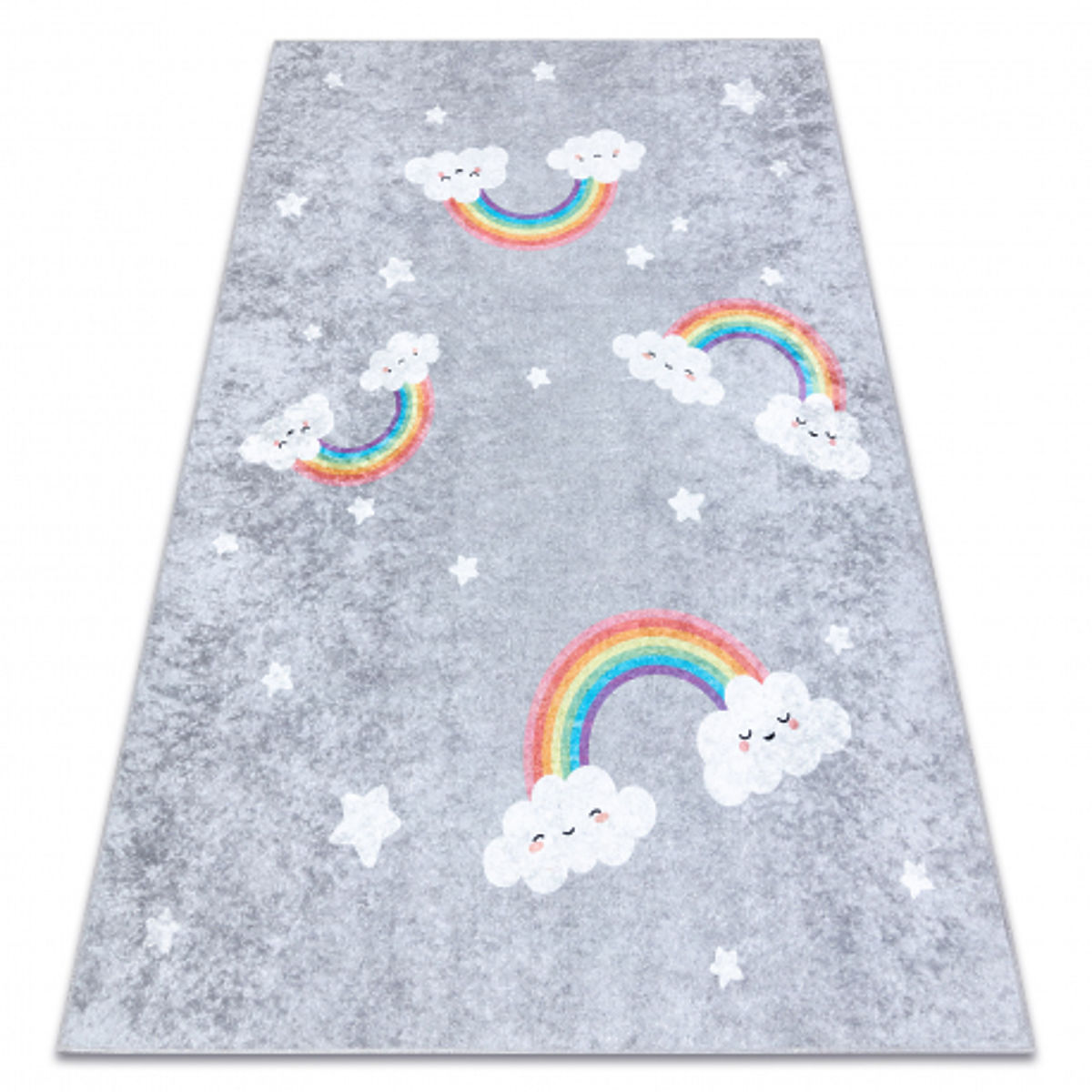 Banaby.ro » Mobilier pentru copii / Covoare pentru copii / Covoroașe de joacă / JUNIOR 52063.801 covor de spălat Curcubeu, nori pentru copii antiderapant - gri