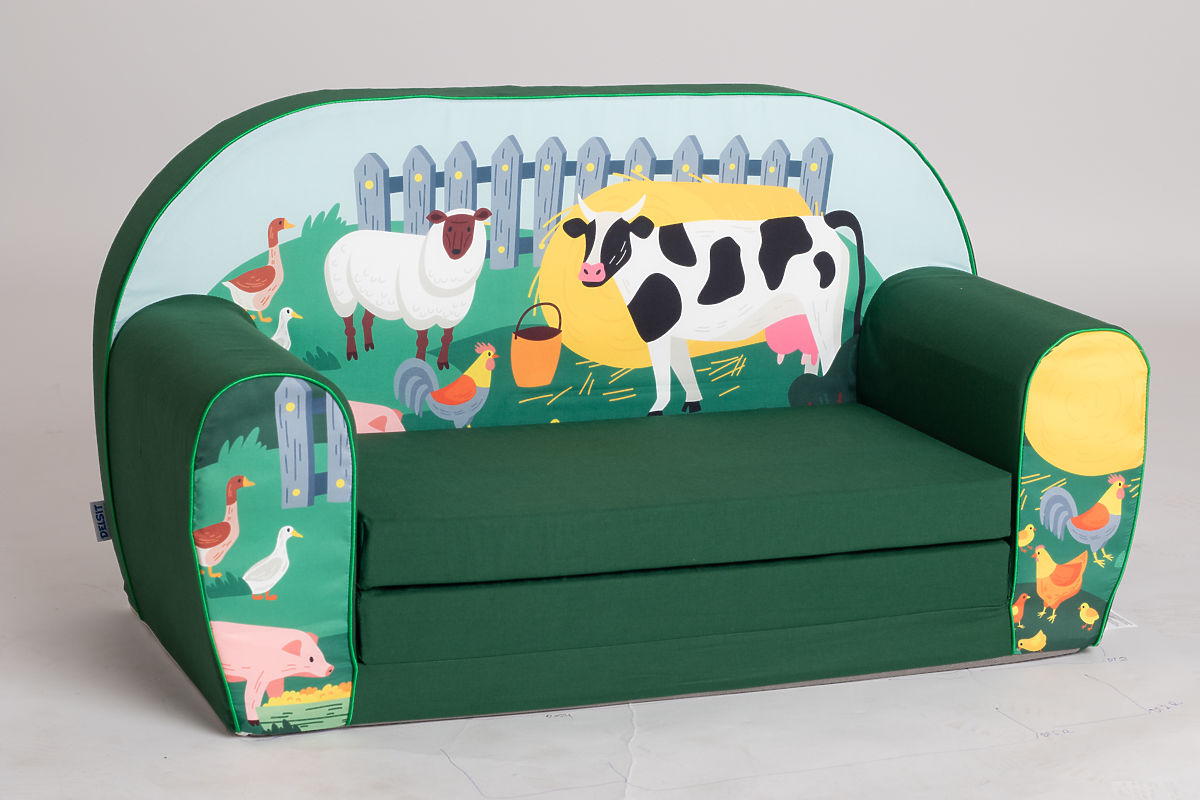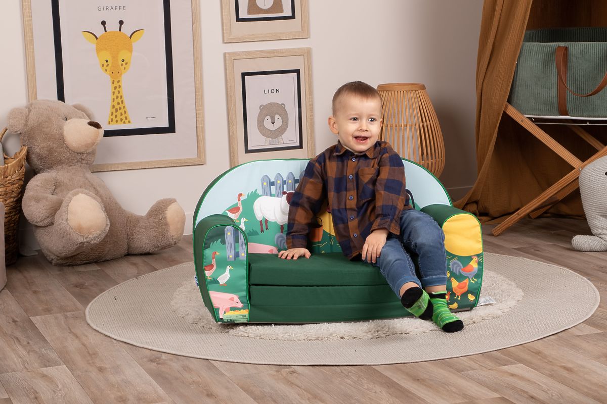 canapea confortabilă pentru copii cu motiv de animale de la fermă