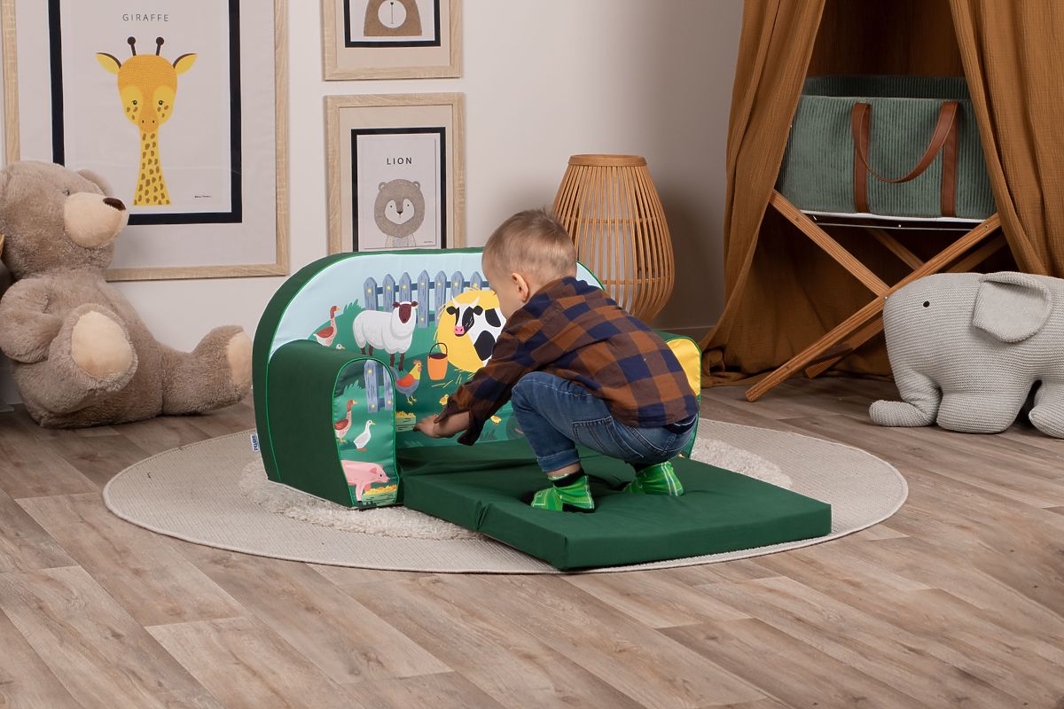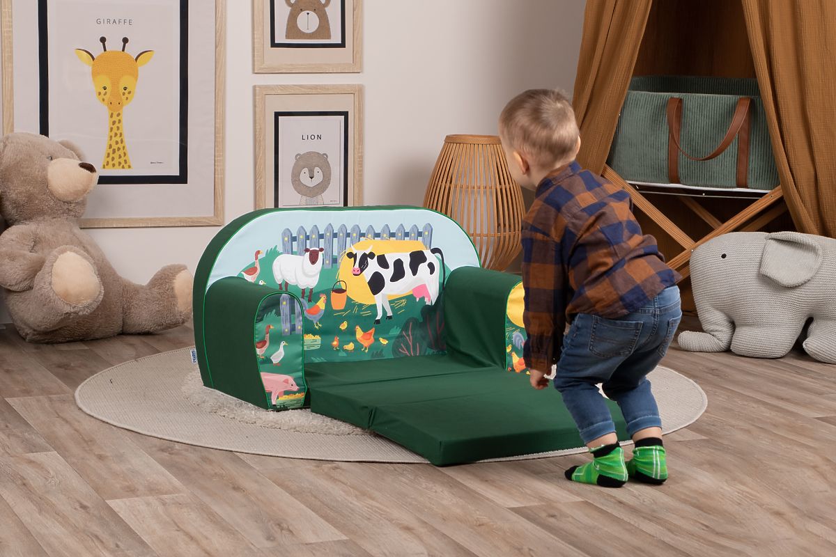 Canapea pentru copii cu animale de la fermă, ideală pentru joacă și relaxare. .. mai mult