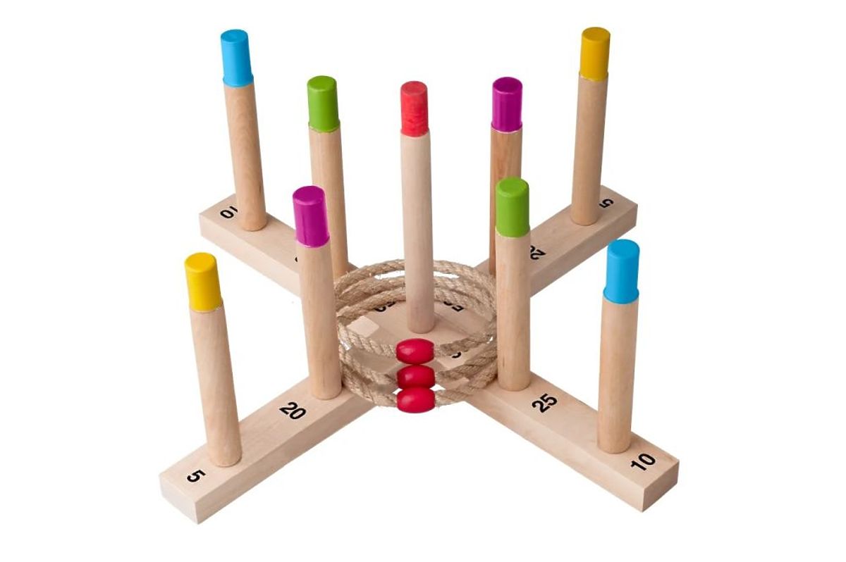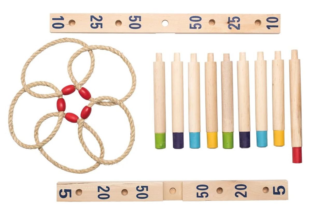 Jocul este realizat din lemn, pe două plăci unite în formă de cruce se află țăruși din lemn, colorați, cu numere de puncte marcate. Țintim spre ei cu cercuri realizate din frânghie, iar dacă aruncăm cercul pe țărușul respectiv, obținem numărul corespunzător de puncte. Jocul poate fi jucat simultan de la două până la opt persoane.
