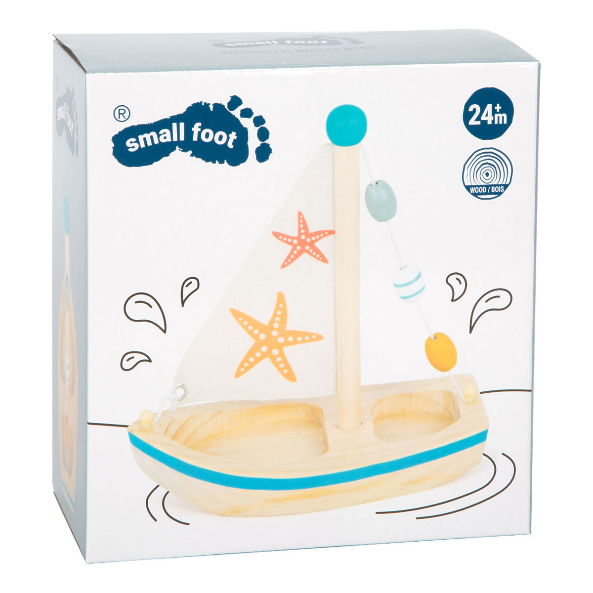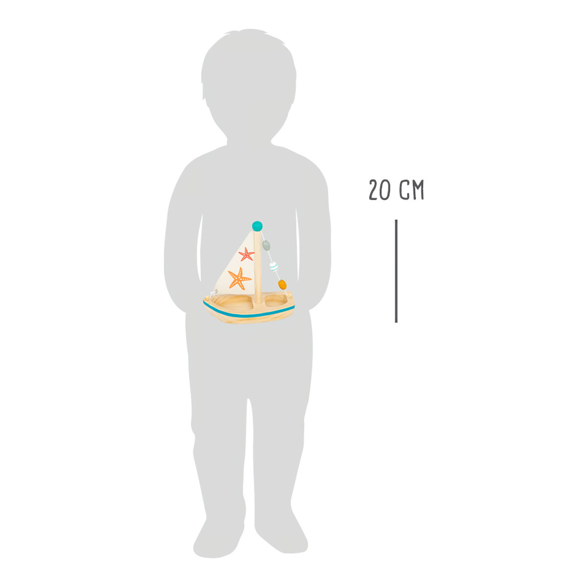 Atenție, toți căpitanii! Cu această barcă cu pânze din lemn, copiii își vor seta cursul către o lume plină de distracții acvatice. Când tinerii marinari ridică ancora, nimic nu-i va opri în jocul lor, fie în cadă, la piscină sau la mare. Barca cu pânze este spațioasă, astfel încât pot pune figurinele lor în ea. Barca este decorată cu mărgele de lemn și imprimeuri cu stele de mare. Jucăriile de apă din lemn sunt o alternativă ecologică la jucăriile din plastic și cauciuc. Pentru o durată de viață mai lungă a jucăriei, uscați-o bine după ce o scoateți din apă. Principalele caracteristici: utilizare în cadă, la piscină sau la mare, jocul stimulează imaginația, în timpul navigării în natură este propulsată de vânt.