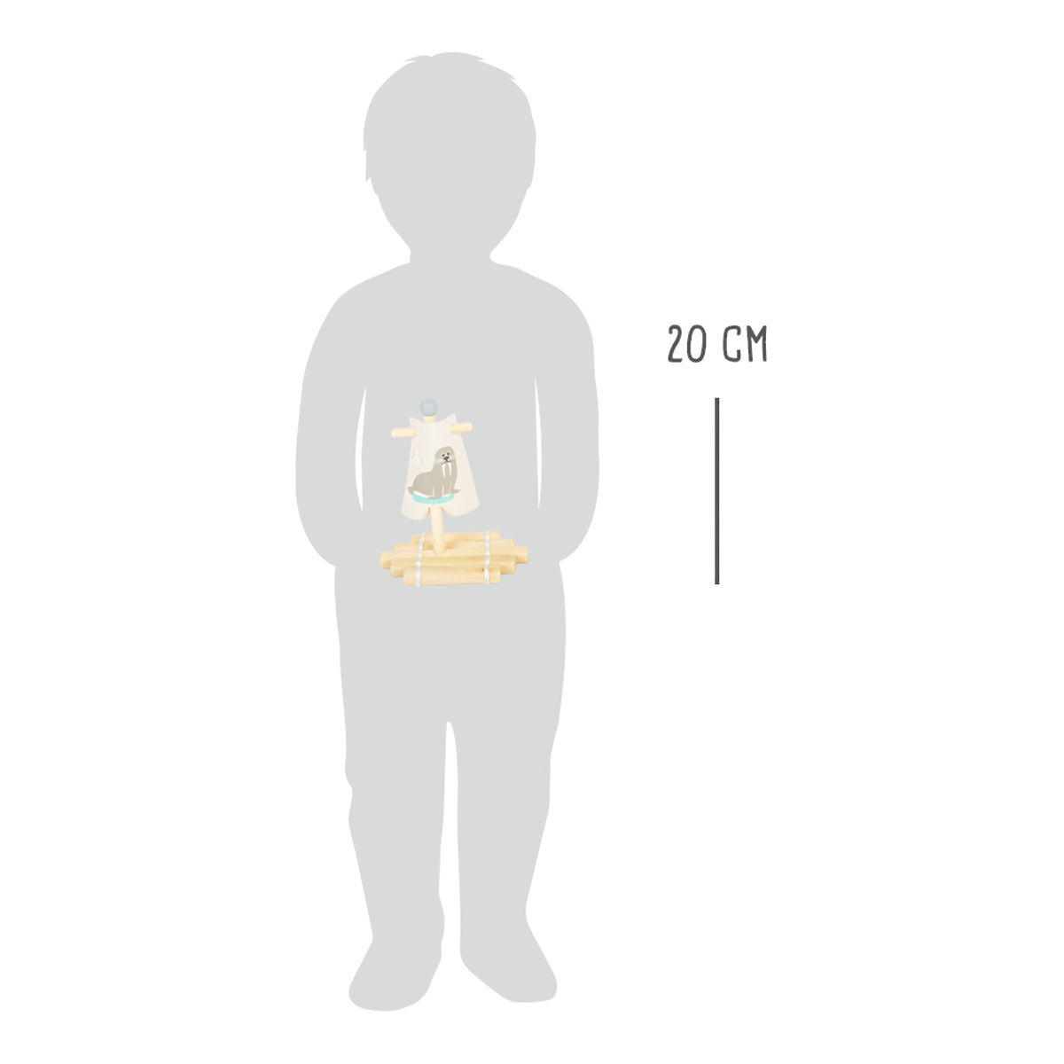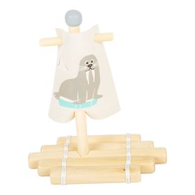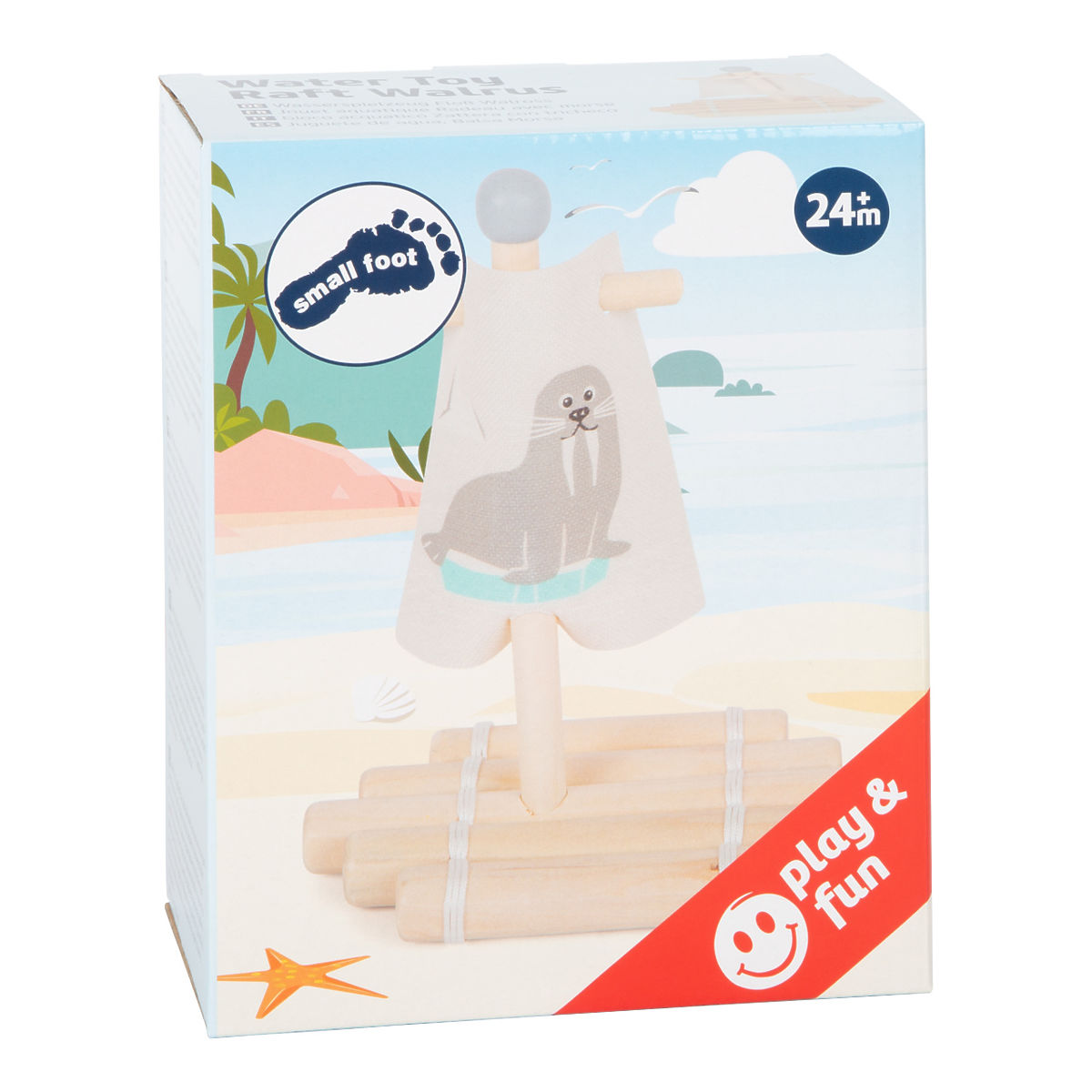 Jucărie de apă - plută cu morsă. Salut, căpitane! Această plută din lemn este perfectă pentru micii marinari. Ei o pot împinge pe apă și se pot bucura de fiecare baie! Fie că este în cadă, la piscină sau la mare – odată ce această jucărie ajunge în apă, nimic nu o mai oprește. Jucăriile de apă fabricate din lemn sunt o alternativă mai ecologică la jucăriile din plastic și cauciuc. Pentru o durată de viață mai lungă, uscați bine jucăria după ce o scoateți din apă. Principalele caracteristici: utilizare în cadă, la piscină sau la mare, jucăria stimulează imaginația, în timpul navigării în natură este propulsată de vânt.