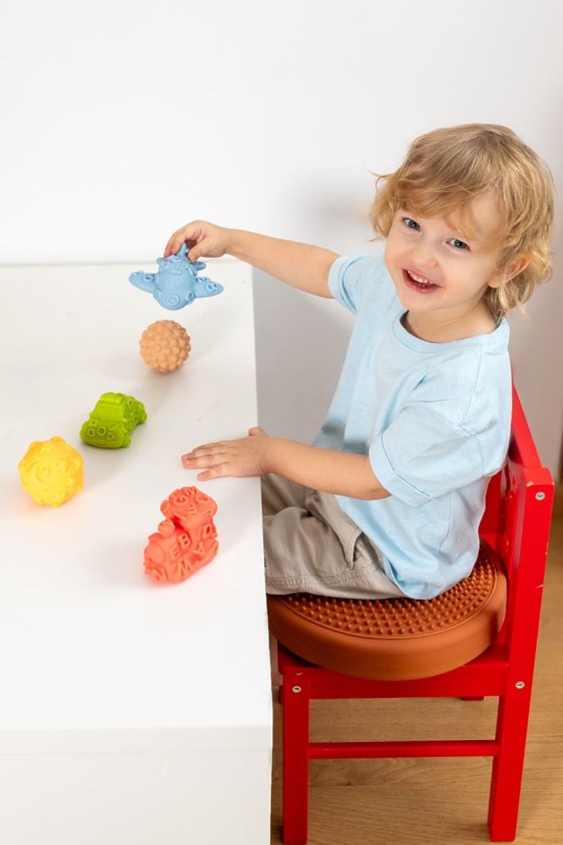 Jucăriile sunt fabricate fără orificii, ceea ce le face ideale pentru baie. Materialul moale și proeminențele de masaj pentru gingii asigură că vehiculele pot fi utilizate în siguranță ca inele pentru dentiție.