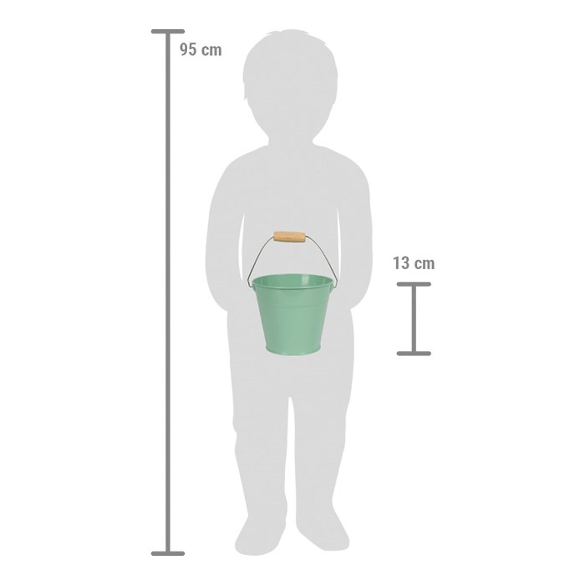 Dimensiuni: înălțimea găleții aprox. 14 cm, Ø aprox. 15 cm, unelte de grădină: aprox. 6,5x2,5x22 cm
