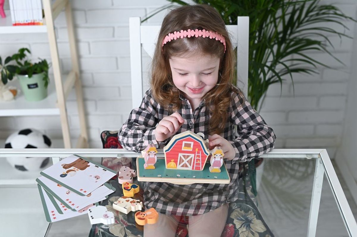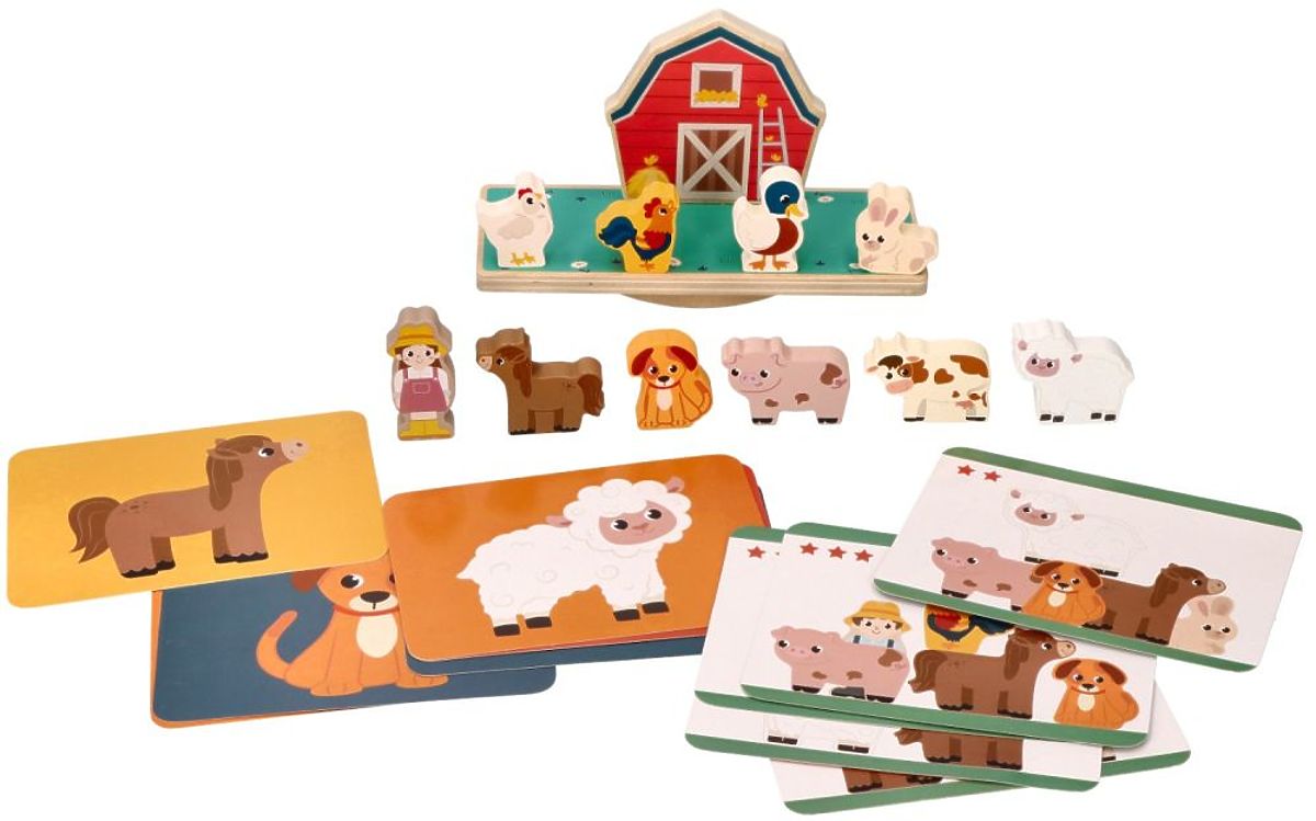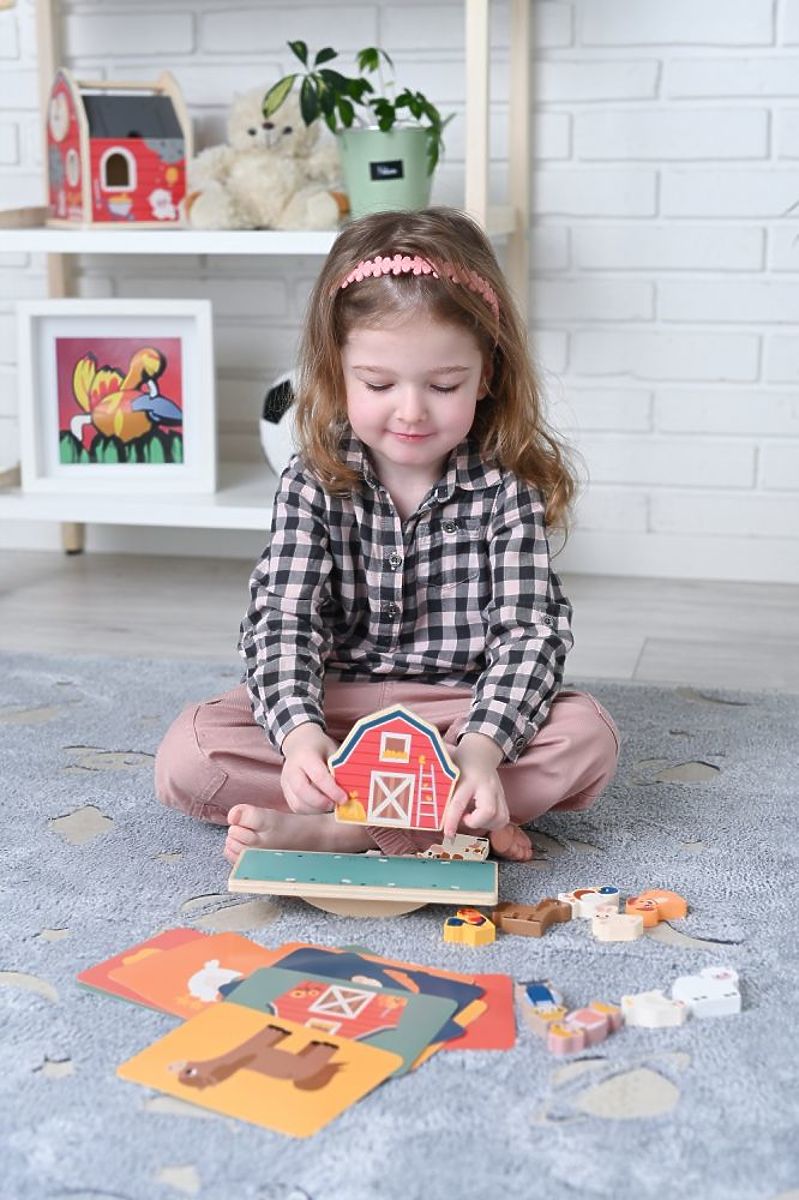 Animalele drăguțe de la fermă vor oferi copilului dumneavoastră multă distracție, dar îl vor învăța și multe abilități valoroase! Frumoasa fermă din lemn cu animale vesele este un joc de abilități și un puzzle într-unul singur.